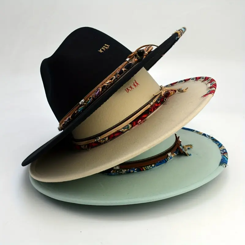 Boho Trim Rope Decor Fedora Hats Classic Solid Color British Style Felt Hat Trendy Jazz Fedoras For Women Men
