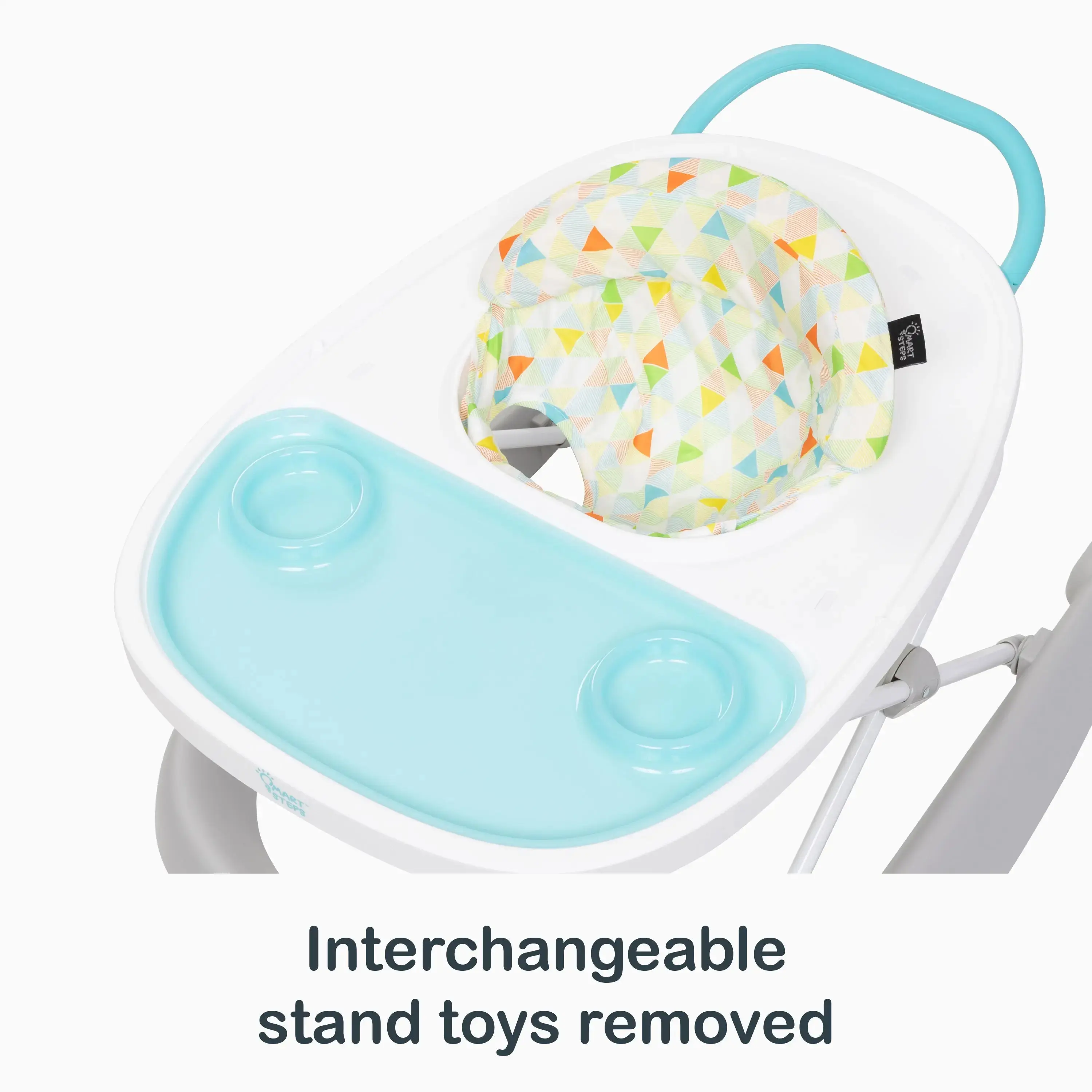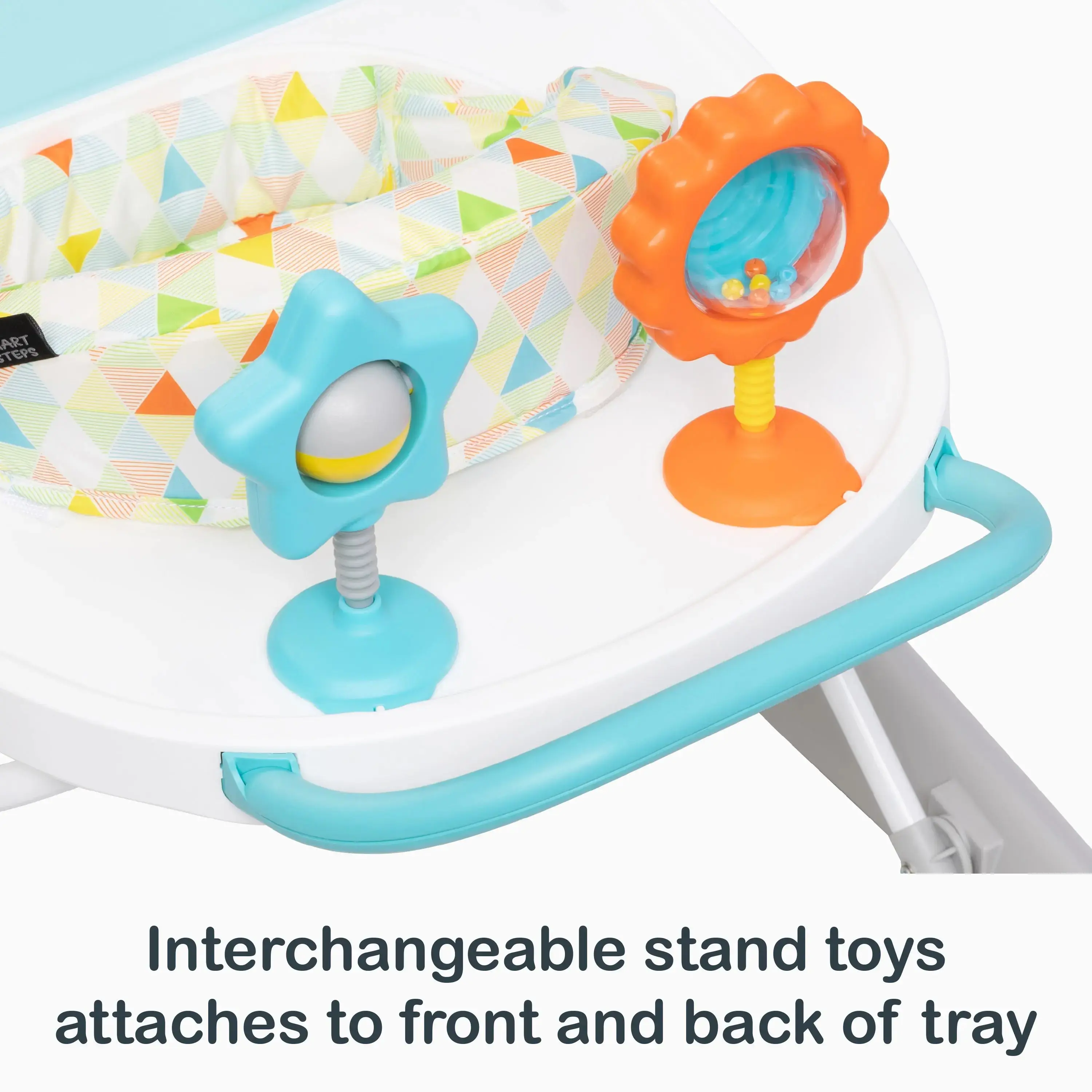 ·Interchangeable stand toys – Attaches to front and back of tray.