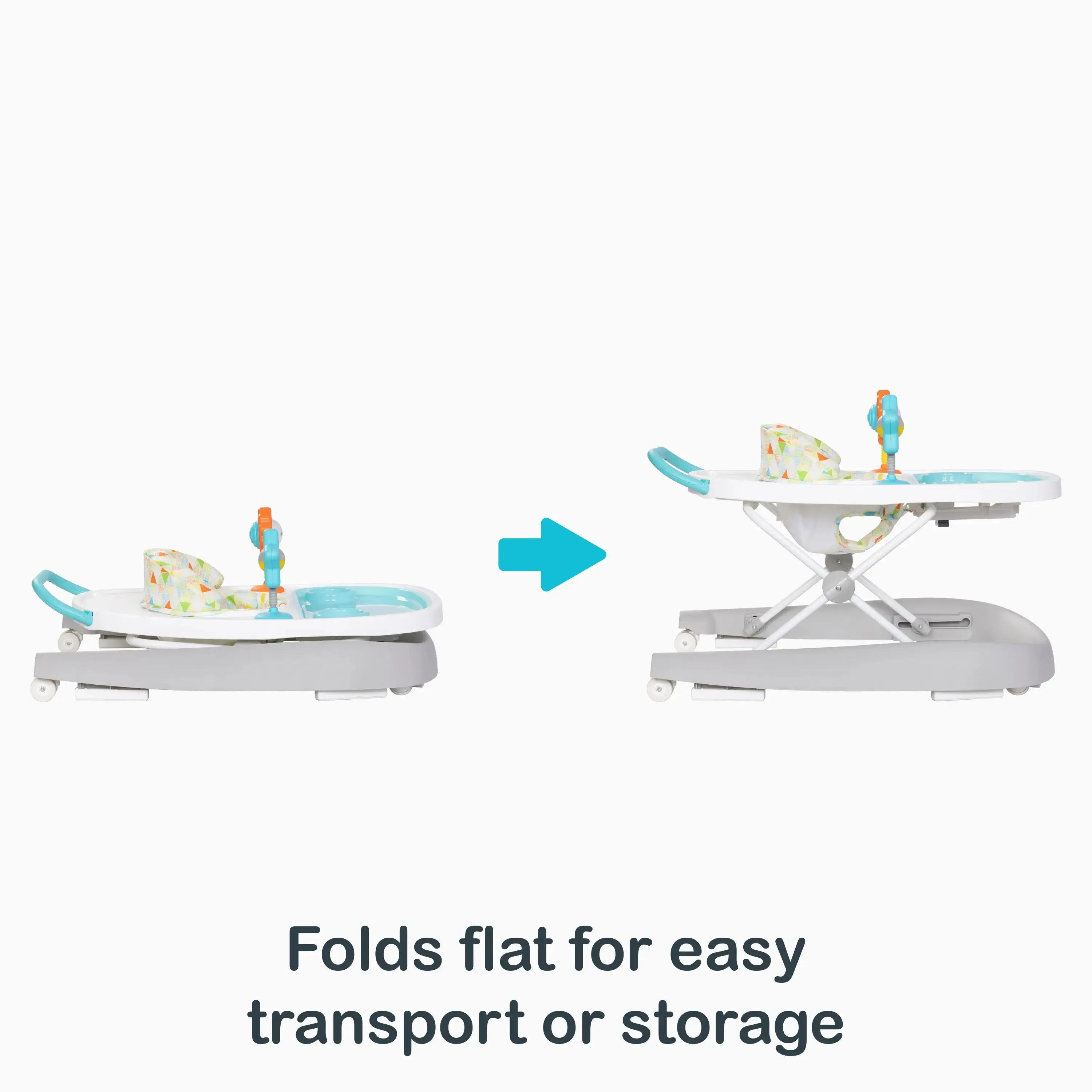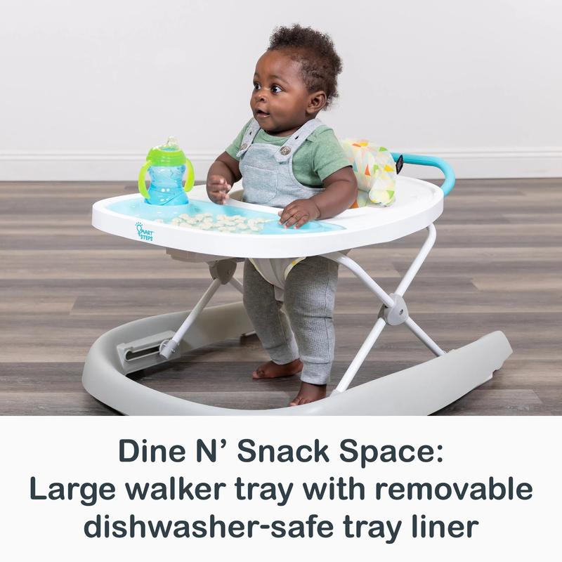 The Smart Steps® Dine N' Play 3-in-1 Feeding Walker offers fun and feeding options while your little one is on-the-go. This unique walker includes a dishwasher-safe insert, which allows parent to easily clean, once baby is done with meal or snack time. Removable Smart Steps toys can attach to the front or back of the walker and will provide hours of endless fun.