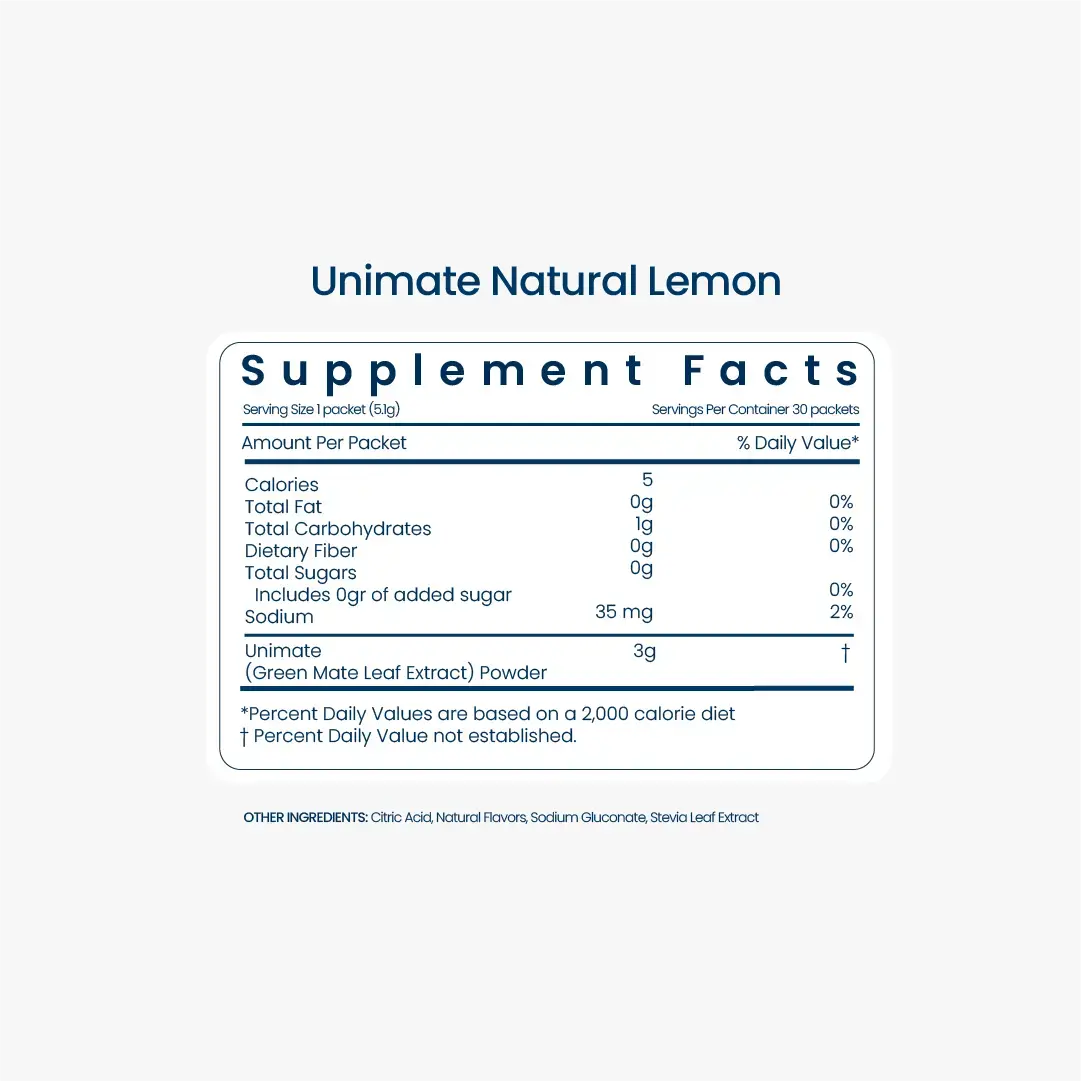 | Ingredients | Green Mate Leaf Powder Extract,Erythritol,Citric Acid,Sodium Gluconate,Natural Flavors,Ginger Root Extract,Rebaudioside A,Sucralose Green Mate Leaf Powder Extract,Stevia Leaf Extract. Guar Gum,Phytosterols,Gum Arabic,Proprietary Blend of Plant-Derived Polysaccharides,Citrus Pectin,Oat fiber,Resistant Maltodextrin,Orange Juice Powder,Calcium (as Calcium Carbonate),Locust Bean Gum,Stevia Extract (Rebaudioside A >75%,Steviol Glycosides >95%),Vitamin C (as Ascorbic Acid),Chromium,Vitamin A (as Beta-Carotene),Beta Glucan,Vitamin E (as D-alpha Tocopheryl Acetate),Niacin (as Niacinamide),Zinc (as Zinc Gluconate),Vitamin B6 (as Pyridoxine HCL),Policosanol (Sugar Cane Extract),Vitamin B12 (as Cyanocobalamin),Folic Acid,Thiamin,Biotin,Riboflavin. |