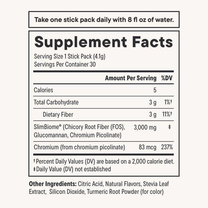 Daily Nouri Prebiotic Fiber Drink Mix is a simple daily fiber routine designed to support gut health. Each stick combines glucomannan and chicory root fiber (prebiotics) to feed beneficial bacteria in the gut. We also include chromium picolinate, a trace mineral that helps support normal macronutrient metabolism. Mix one stick with water and enjoy a gentle, fiber-forward boost as part of your everyday wellness plan.What’s Inside