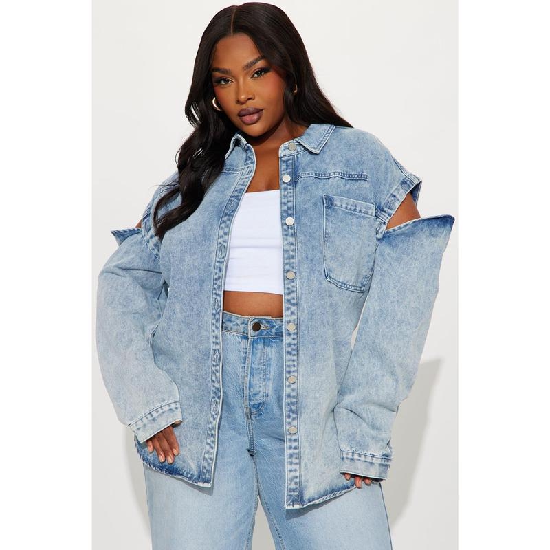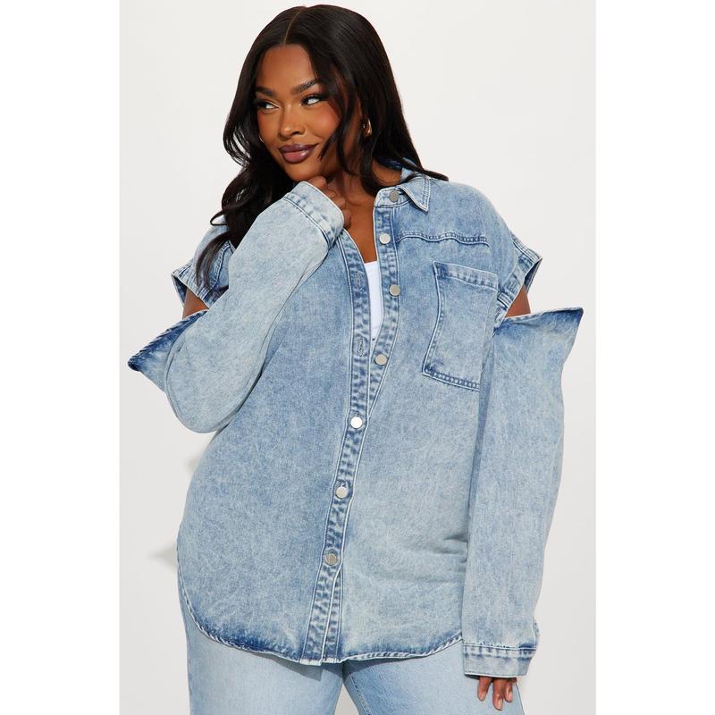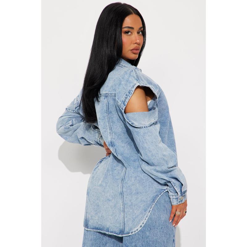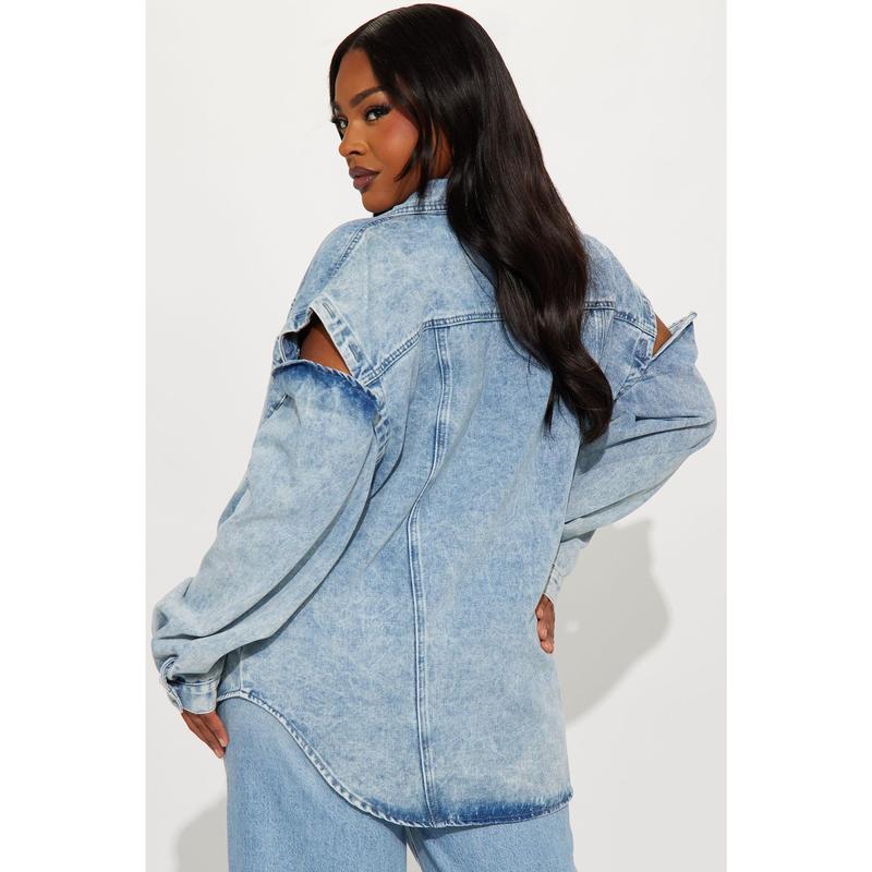 Feeling Grunge Denim Shacket - Light Wash