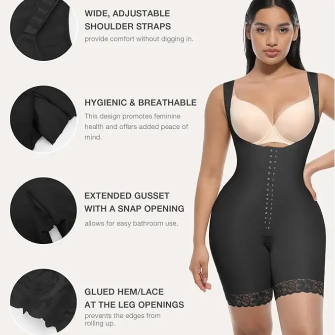 ·Convenient and Clean Design: Our fajas colombianas are designed for your comfort and ease. The cotton-lined gusset eliminates the need for underwear, ensuring comfort and confidence. An extended zipper in the crotch area makes bathroom breaks effortless, offering a worry-free experience for seamless all-day wear.Product description
