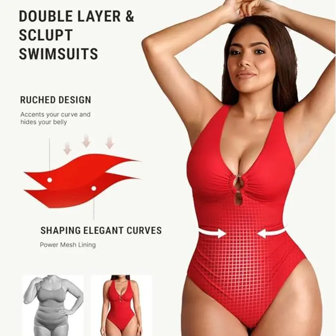 FeelinGirl #Live1 One Piece Swimsuit Womenwear Plus Size Plain Color High Cut with Removable Pads Summer New Arrivals SpringStatements