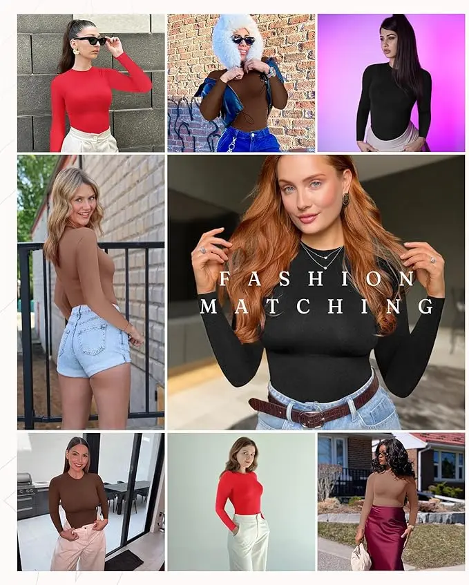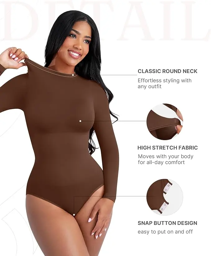 FeelinGirl Seamless Long-Sleeve Bodysuit for Outerwear