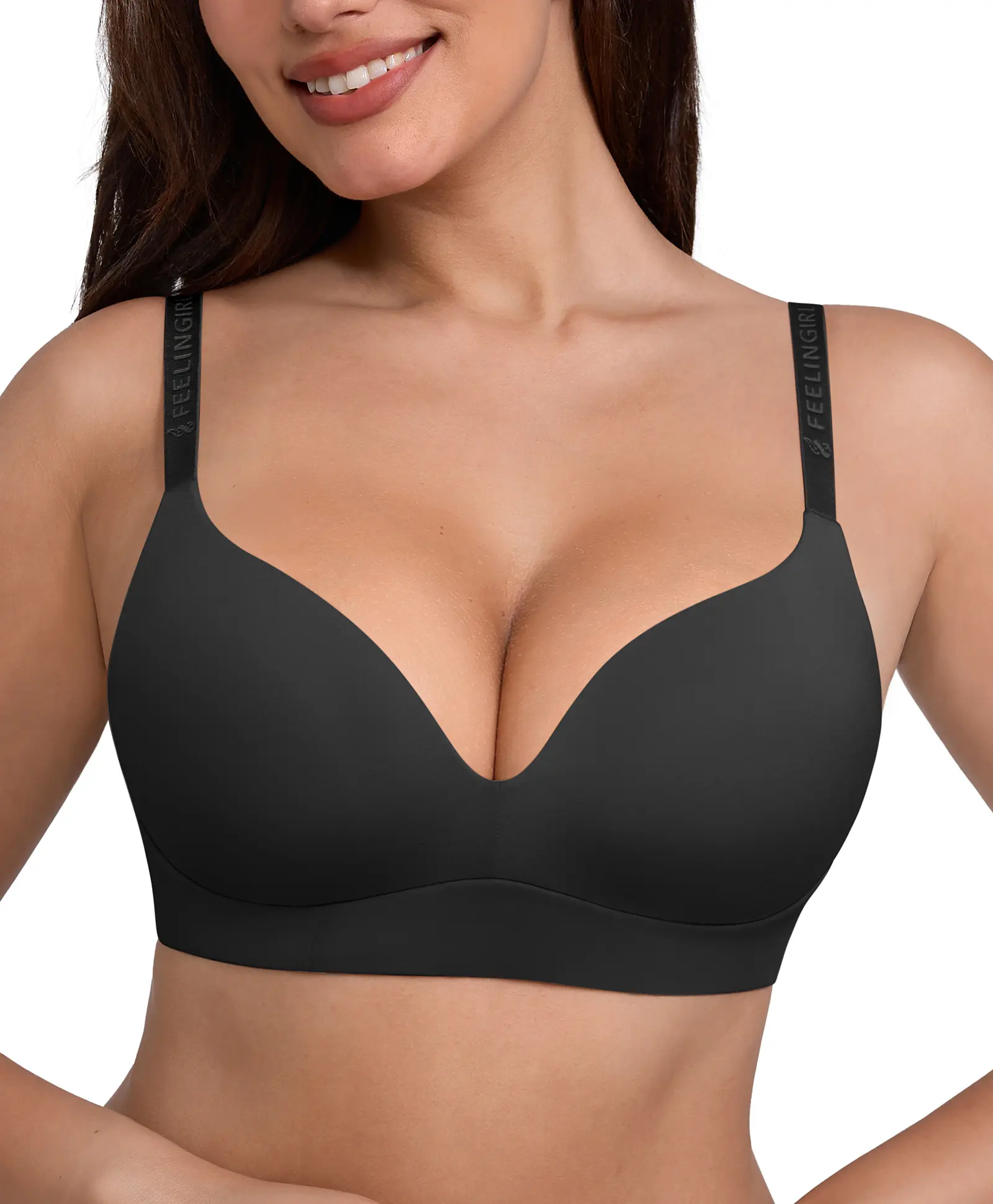 The double-layer front lining guarantees absolute coverage. No nipple show-through even under white shirts or workout tops. Fully seamless edges and smooth molded cups make this bra disappear under everything. Enjoy complete coverage and confidence.