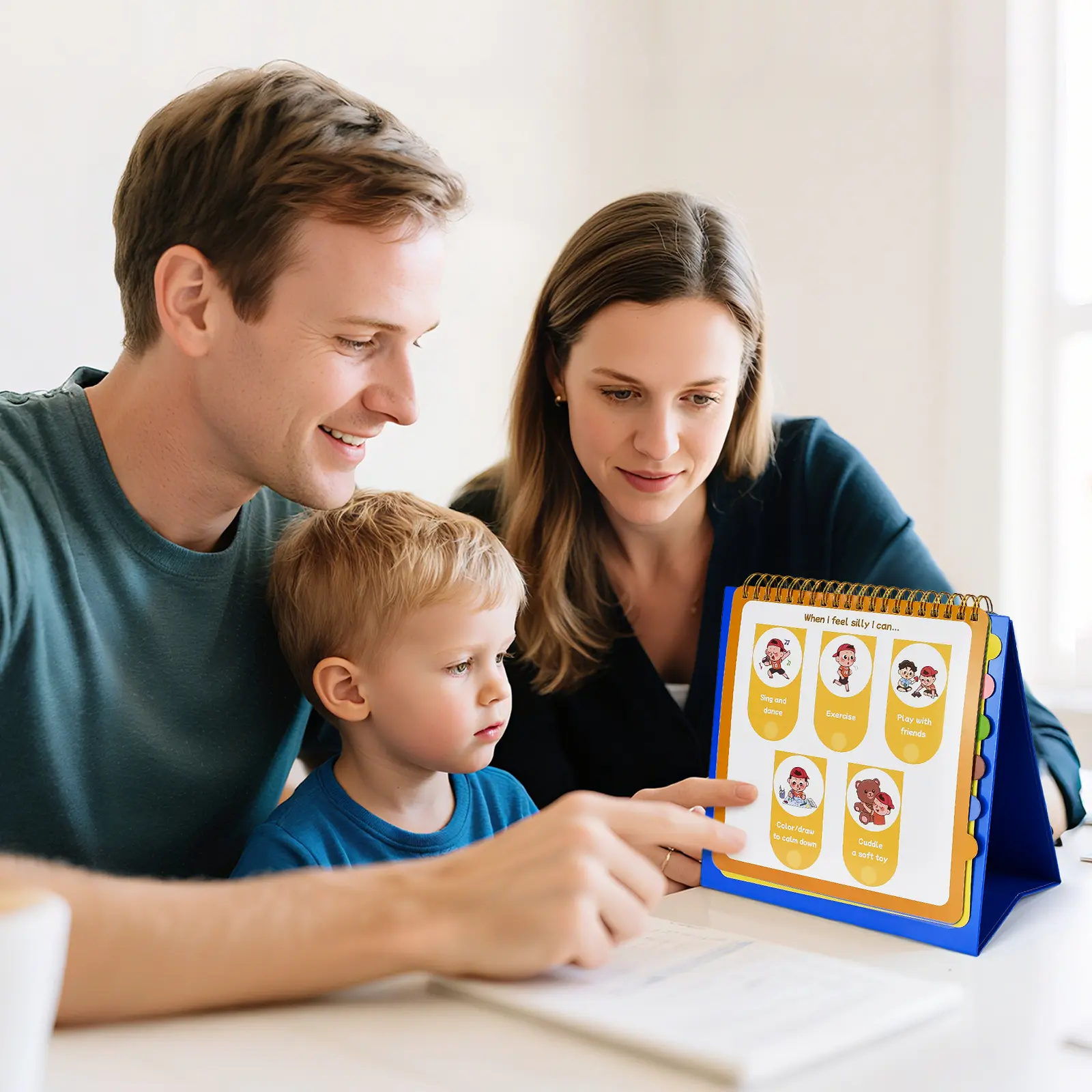 Every page of this feelings book is laminated and features vibrant, kid-friendly illustrations. The tabs along the edge of the flipbook make it simple for children to quickly locate a specific emotion when needed.