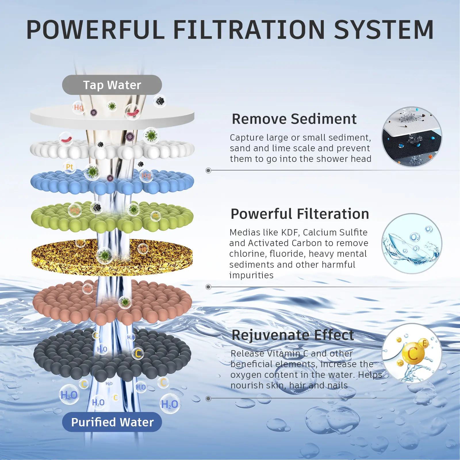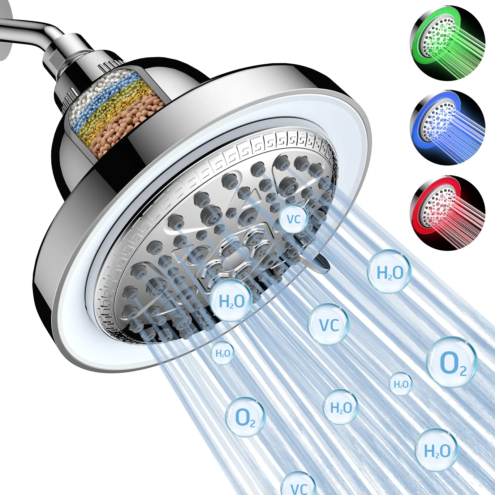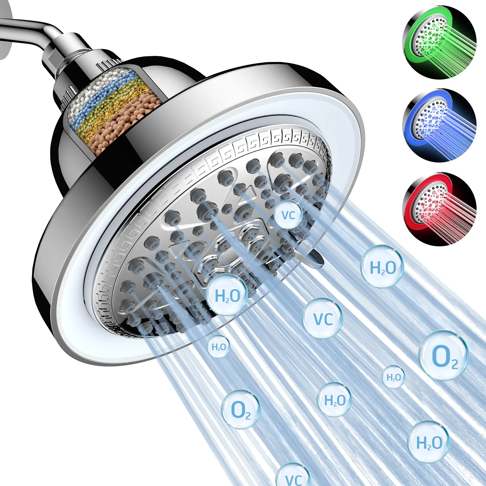 【Purify the Water】 This FEELSO newest designed shower head is equipped with powerful filter layer, with superior KDF, calcium sulfite, Alkaline metasilicic acid balls and so on, aims to eliminate residual chlorine, heavy metals (lead, mercury, nickel, chromium) and other harmful substance. It can also adjust the pH value of the water and keep it stay in a slightly alkaline, which can help restore healthy and smooth skin, soft and strong hair. You can enjoy the cleanest shower experience with your family, especially needed by elder, women and children.
