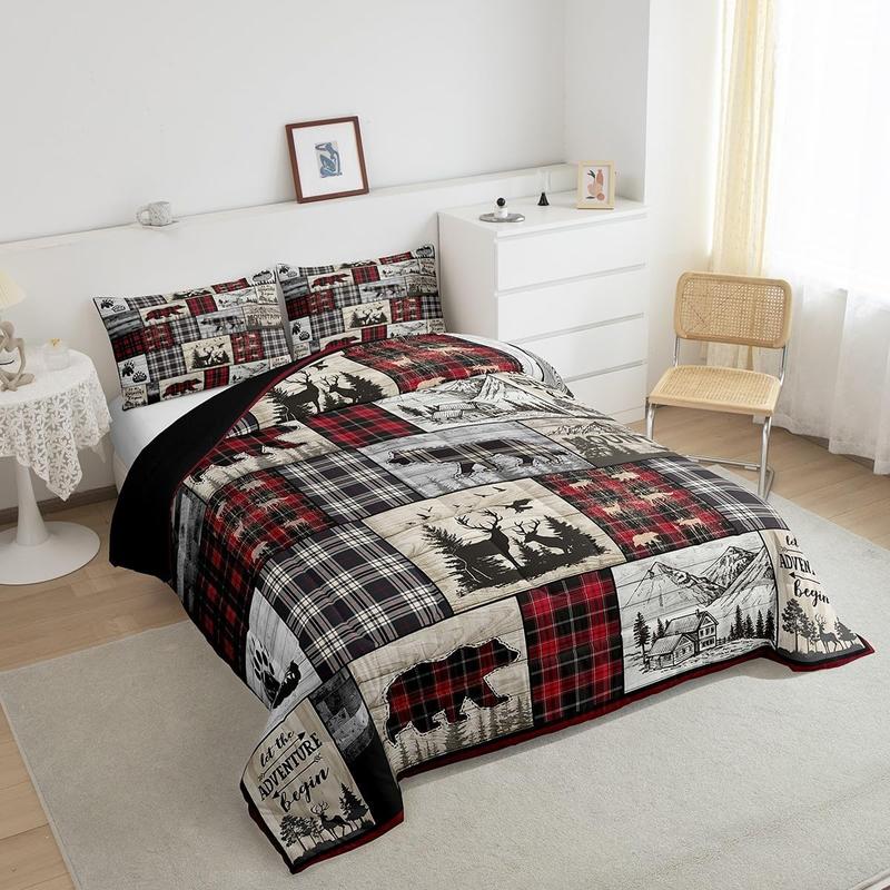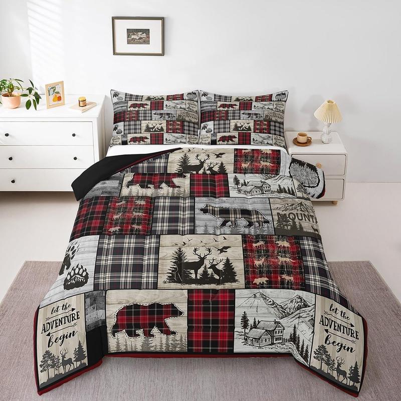 Elevate your bedroom with the Rustic Cabin Comforter Set. This woodland-themed set features a wolf, deer, and bear design. Available in Twin, Full, Queen, and King sizes, it includes a comforter and pillowcases. The U-stitching and microfiber filling ensure durability and comfort. Update your decor effortlessly. 🌲