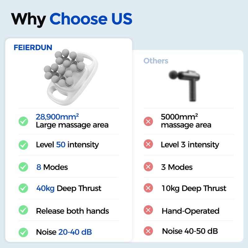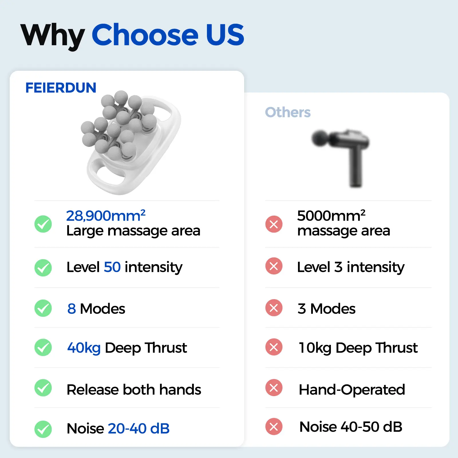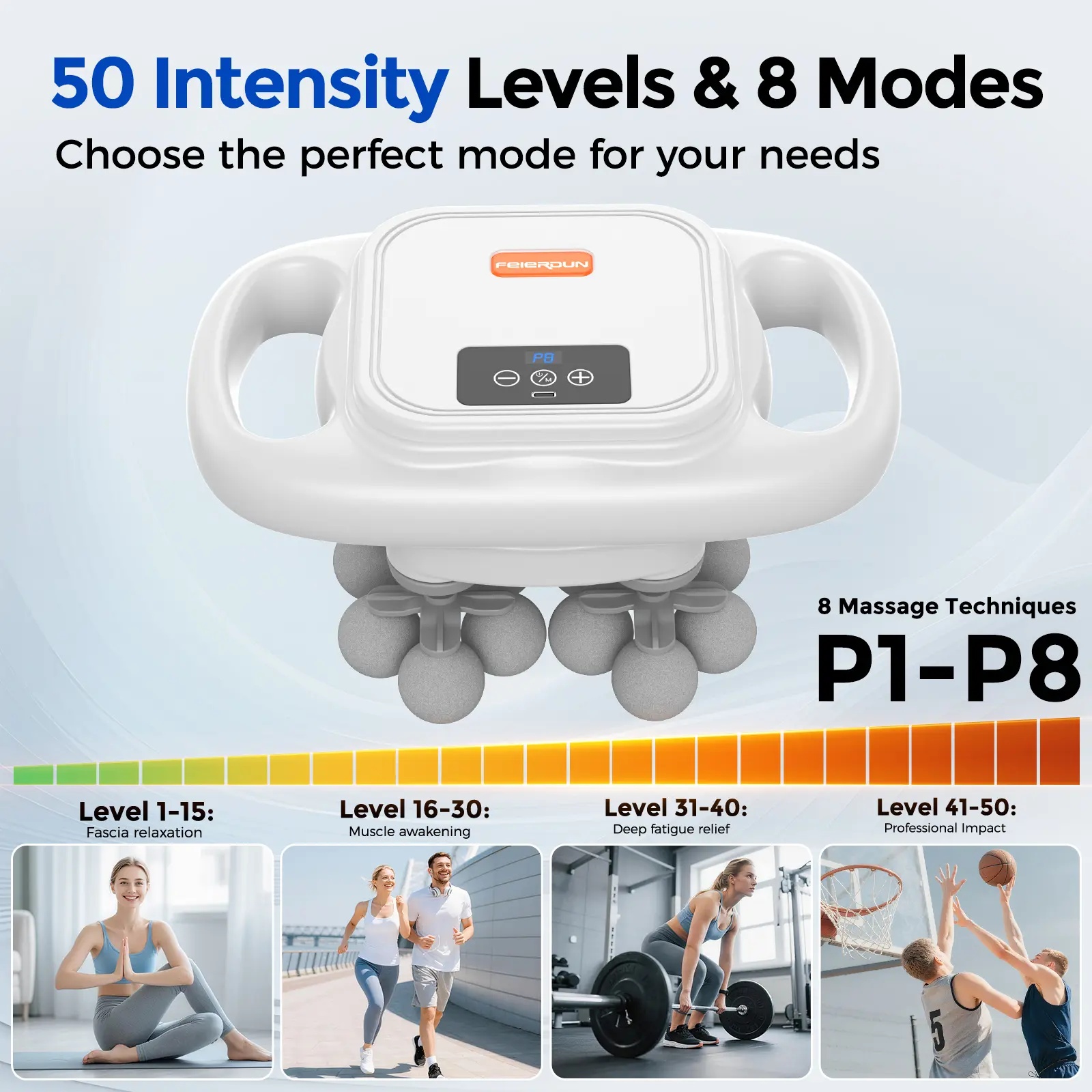 ·8 Modes & 50 Intensities: From deep tissue to gentle relief, the massager precisely acts on specific muscle groups.
