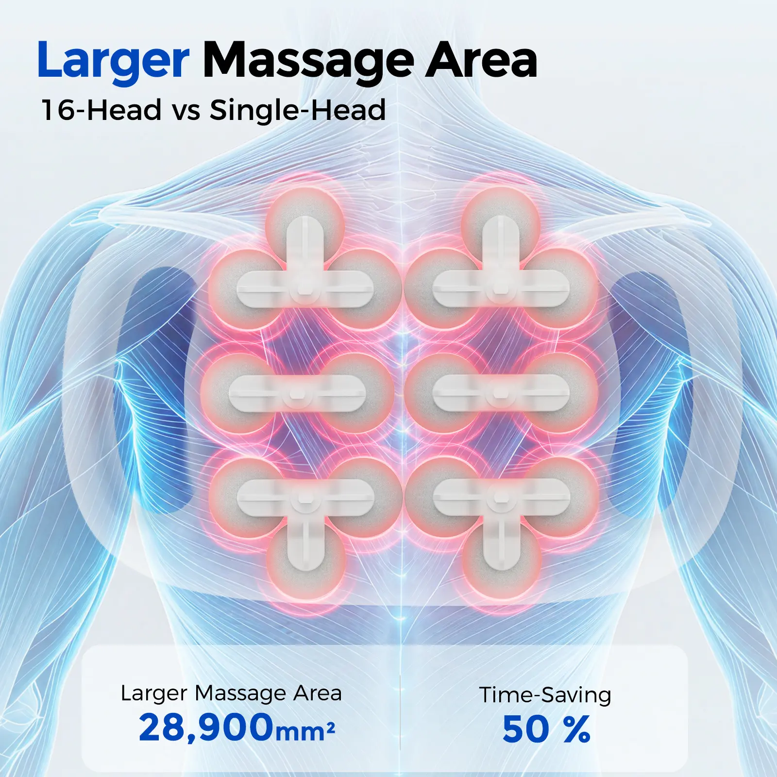·16-Head Design: The 16 heads massager enhances circulation and nourishes the body. Ideal for legs, back, shoulders, and waist. It is not only beneficial for recovery after exercise, but also a good helper for daily stress relief.