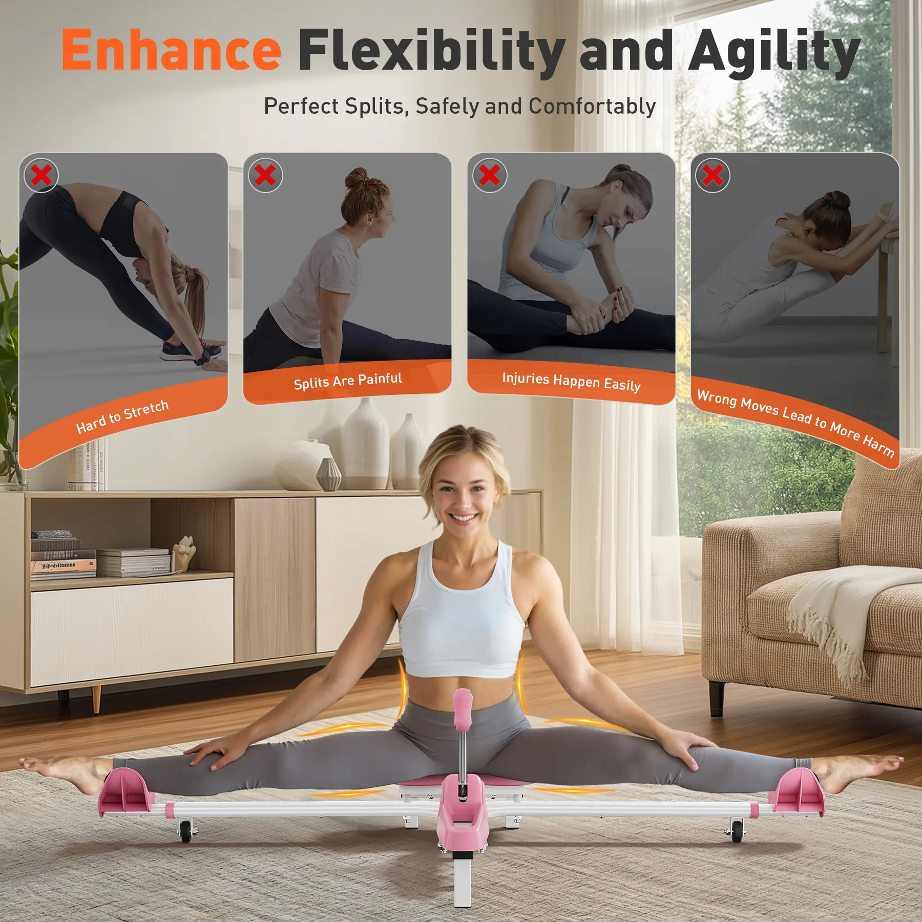 This leg stretcher boosts flexibility and agility, ideal for dance, gymnastics, yoga, and martial arts. It offers a deep stretching experience suitable for all users. Perfect for beginners and athletes, it's a versatile fitness equipment accessory.