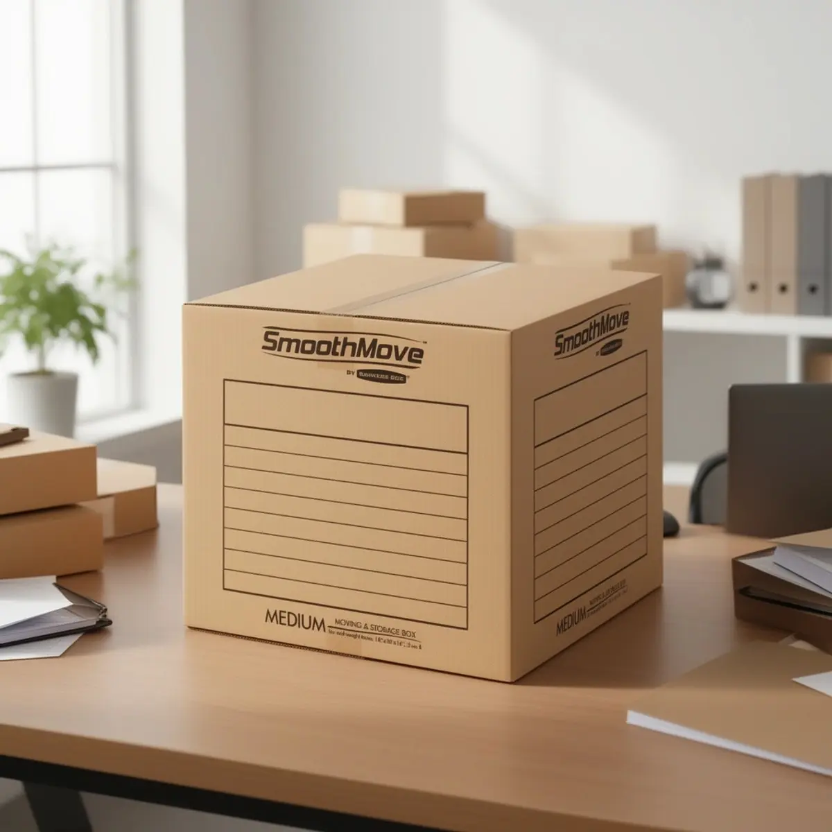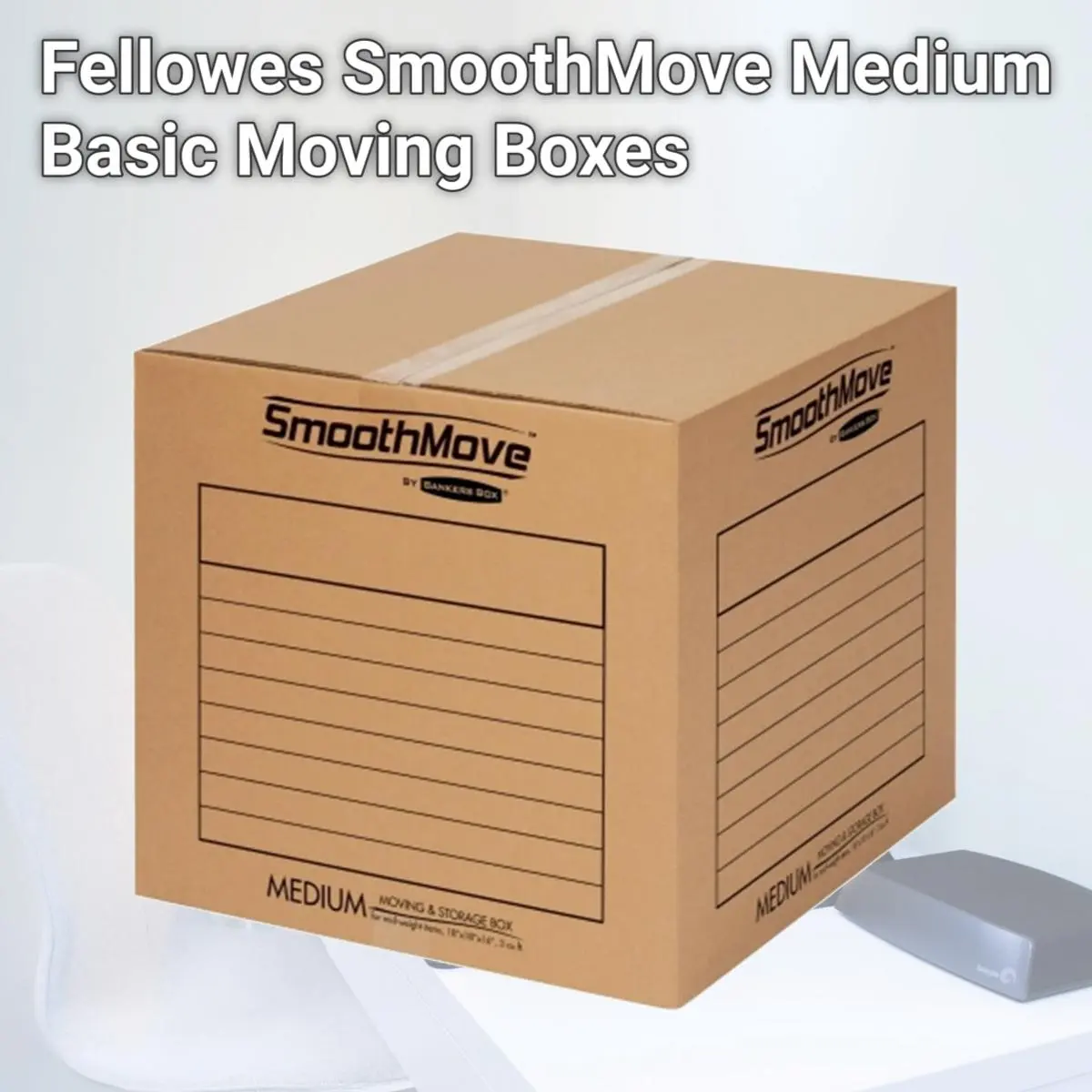 Features Standard moving boxes are designed to pack mid-weight items.. Pre-printed lines on the exterior offer a place to itemize the contents.. Tape is required for assembly.. SmoothMove Medium Moving Boxes are reusable for the next move and recyclable.. Boxes are made of strong, 32 ECT C-Flute, corrugated material..