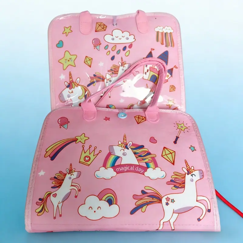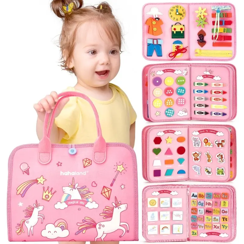 Felt Learning Board Set with Unicorn Design, Portable Interactive Multi-Page Cloth Book for Age 3+, Parent-Child Learning Activities, Visual Learning Tools