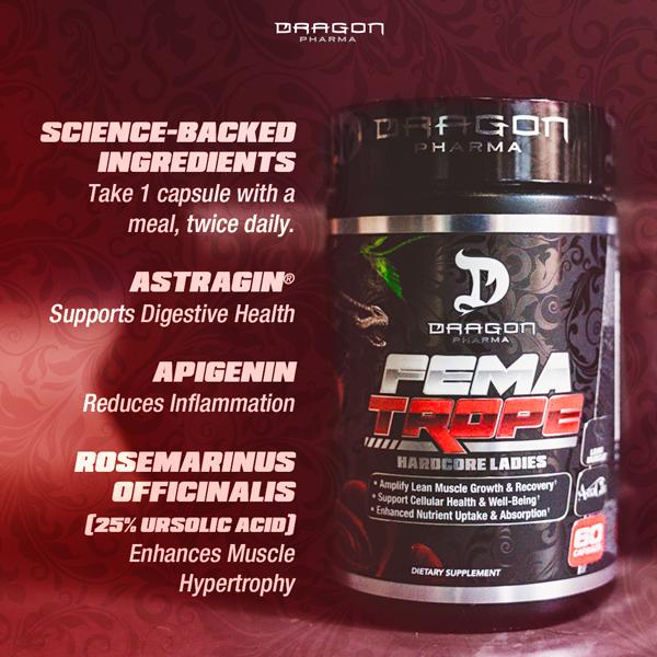 Fematrope is here to stack the deck in your favor and get your gains back on track. Featuring research-backed ingredients that support natural anabolism resulting in lean muscle growth, accelerated training recovery, enhanced nutrient uptake, and overall support of lean muscle, Fematrope will get you to where you want to go faster and help you achieve that alpha female status.