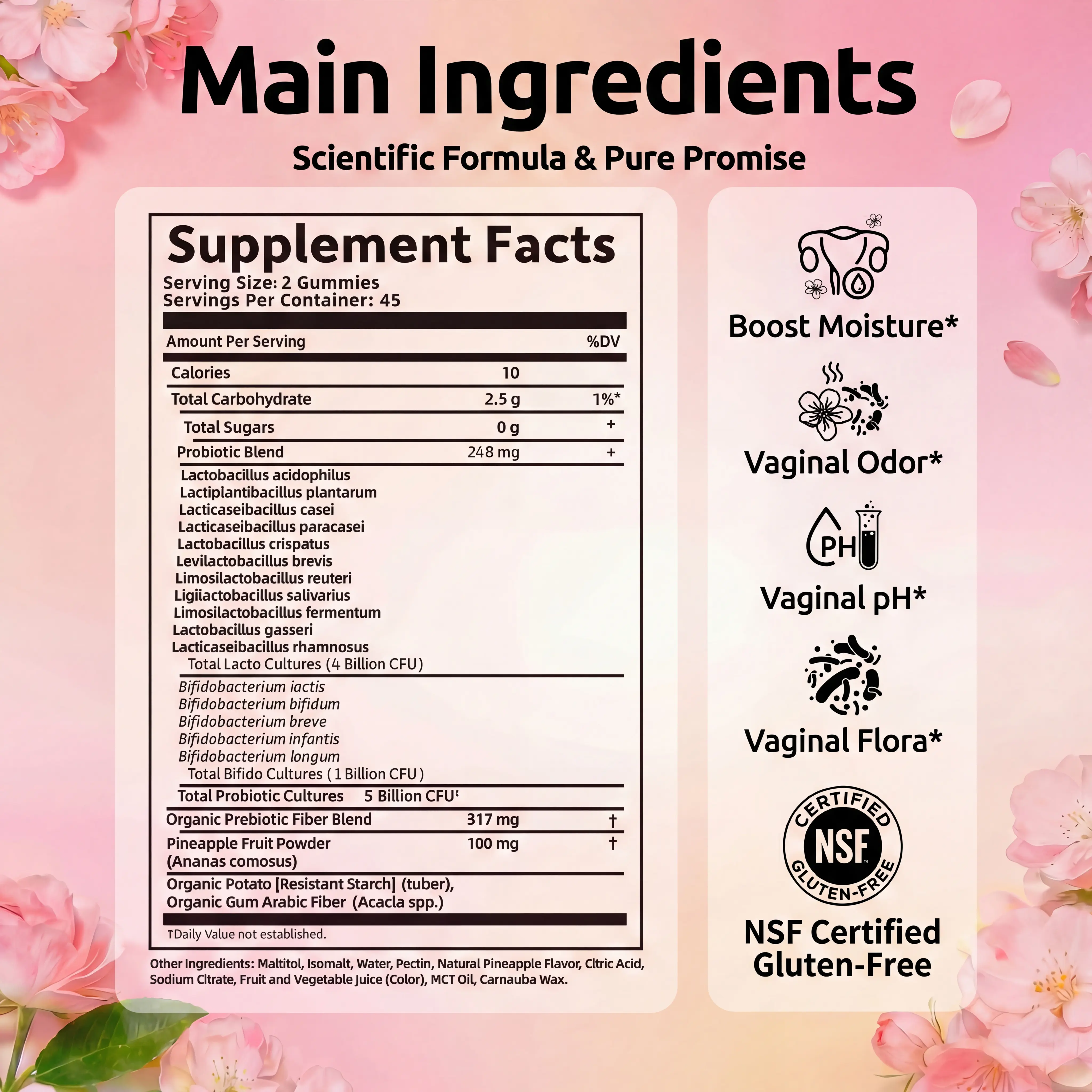I was skeptical of gummies, but these are NSF certified & legit. Hawaiian Pineapple flavor is addictive. 90 count is generous. It cleared up my issues fast. I feel watery & slippery naturally now, no lube needed! My intimate life is amazing again. My husband is very happy.