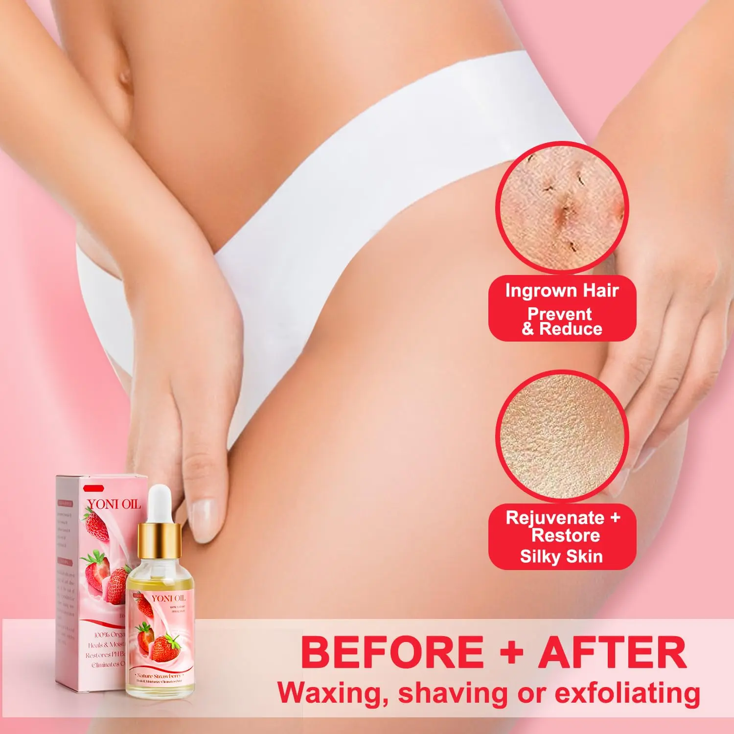 none of the products made me burn down there or anything so far and it smells good but the gel wash comes in a small bottle but it keeps me fresh idk if i can trust that oil tho kinda sus