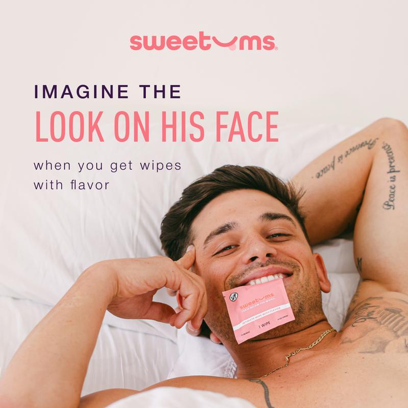 Try the Sweetums Sample Pack Wipes, the ultimate game-changer for confidence and freshness. Designed for those who want to feel clean, smell amazing, and add a little extra sweetness to intimate moments, these flavored feminine wipes are discreet, effective, and made for real results. With our Sample Special, you get 24 wipes—3 of each tantalizing flavor—so you can switch it up depending on your mood.