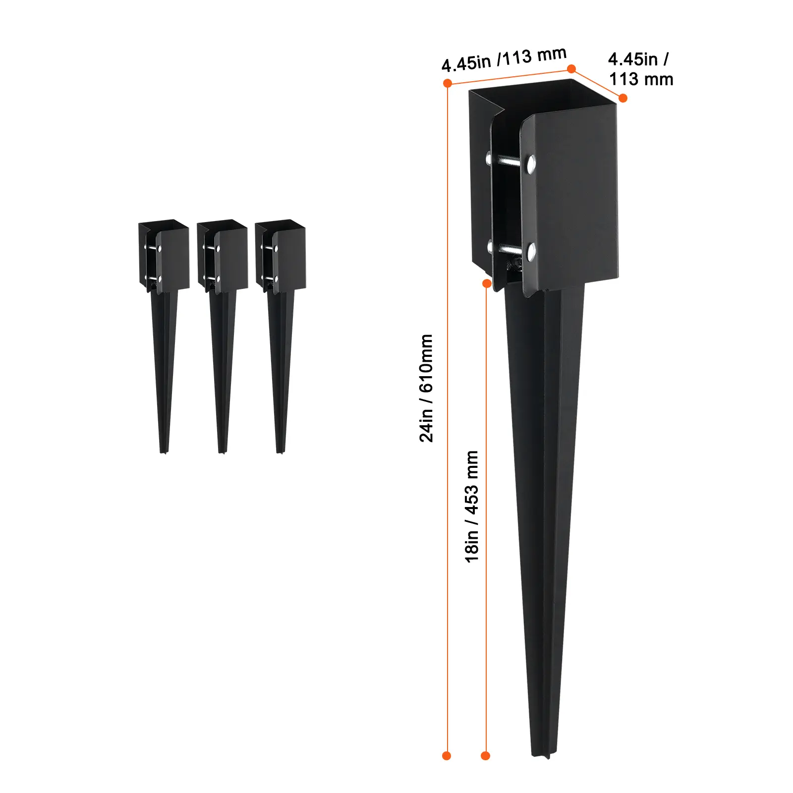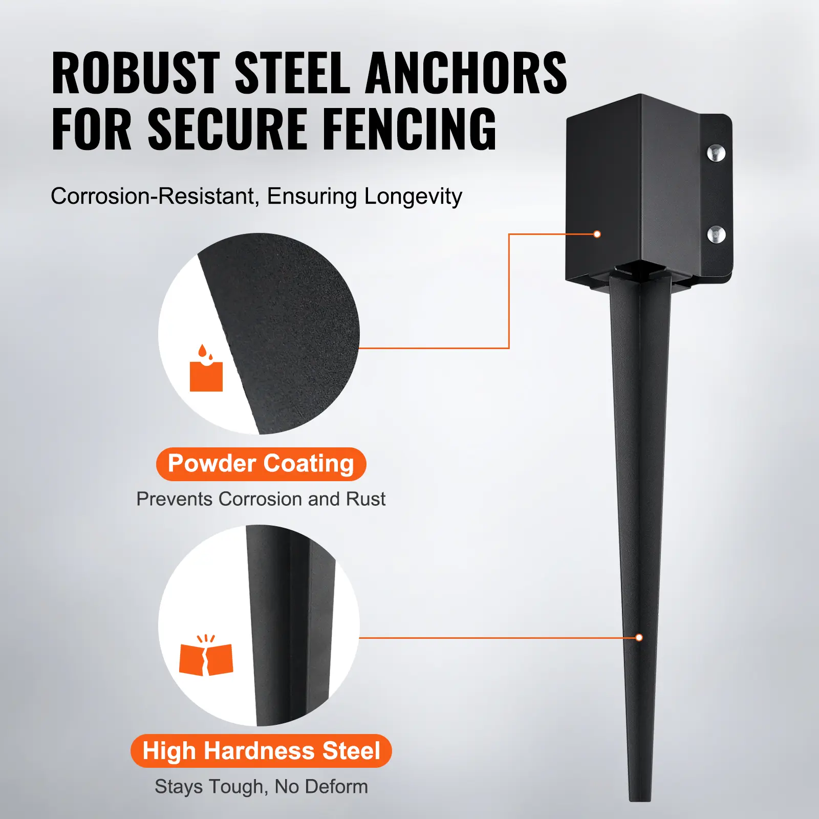 5. VEVOR Fence Post Anchor Ground Spike, 4 Pack 24 x 4 x 4 Inches Outer Diameter (Inner Diameter 3.5 x3.5 Inches), Metal Black Powder Coated Post Stake Ground, for Mailbox Deck Garden Railing