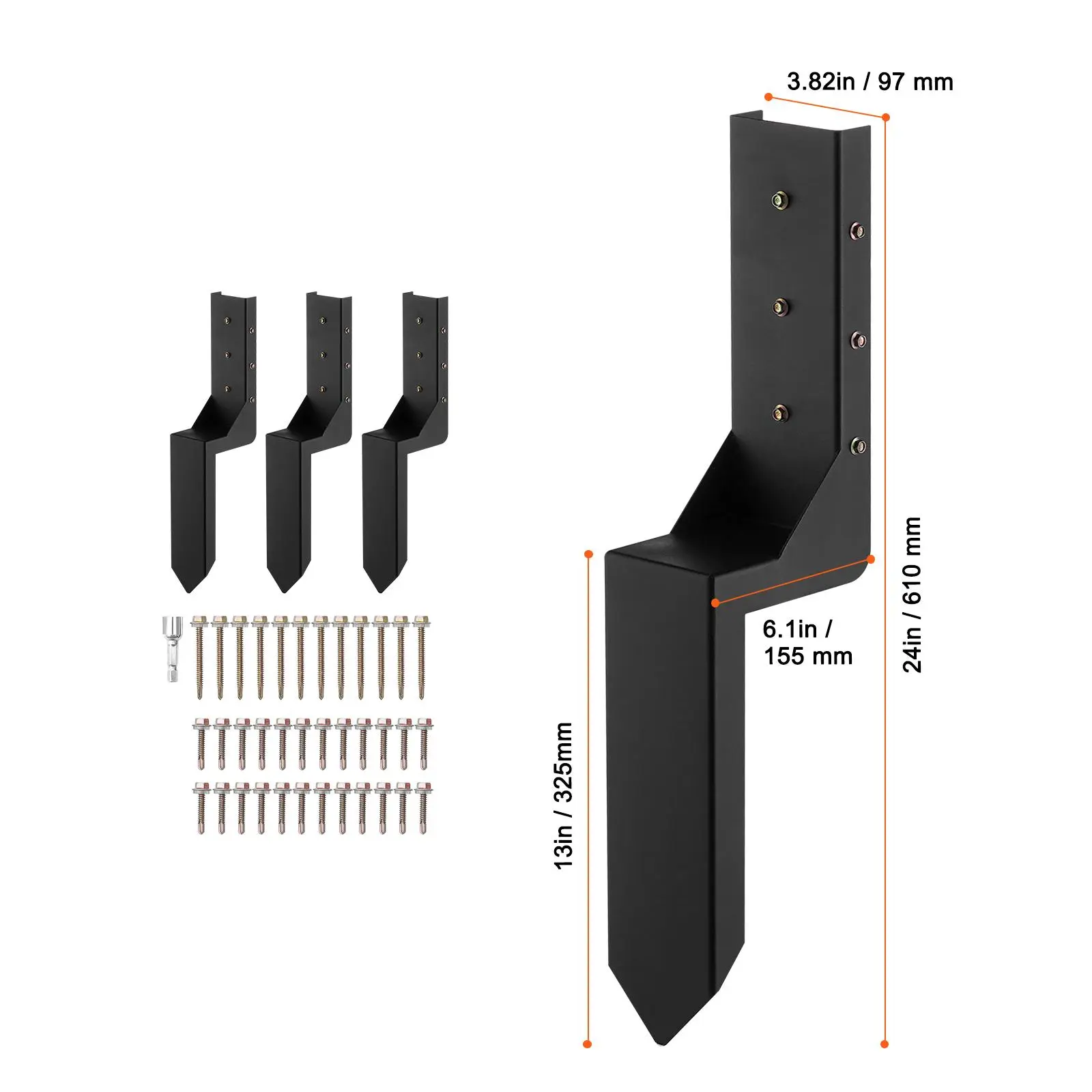 • Fits 3.5” Wood: External solid spike with a total height of 24 inches, a nail length of 13 inches, and a side width of 1.2 inches, suitable for 3.5-inch timber, providing excellent support.