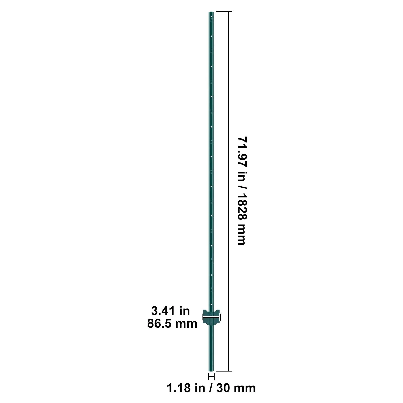 • Sturdy & Durable Fence Post: Made from 2 mm (0.08") thick Q235 carbon steel, this fence post offers high strength and rigidity. The U-shaped channel design improves bending resistance, while the powder-coated finish provides UV protection and corrosion resistance, ensuring durability in all weather conditions.