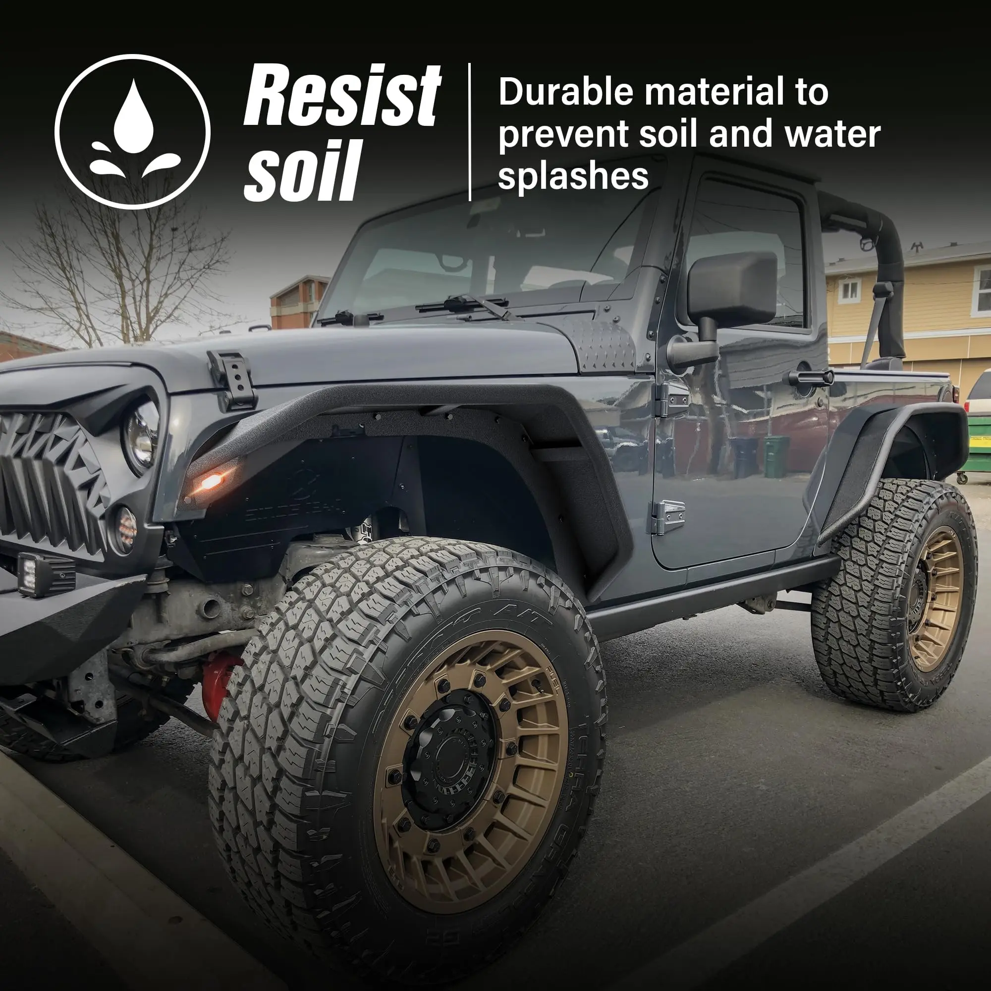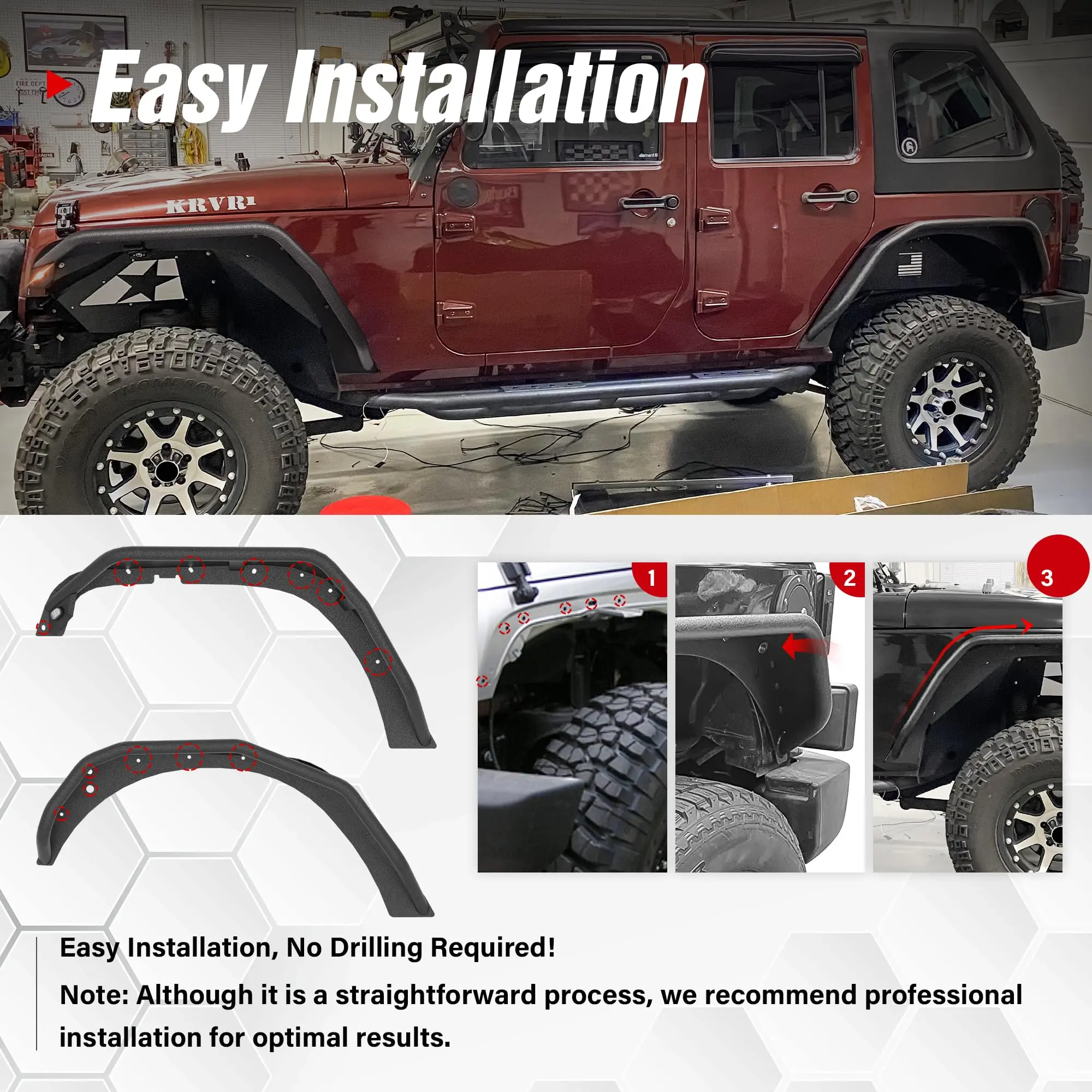 ·【Compatibility】Front and Rear Fender Flares fits 2007 2008 2009 2010 2011 2012 2013 2014 2015 2016 2017 2018 Jeep Wrangler JK JKU Unlimited 2-door and 4-door models. Please verify your vehicle's compatibility before purchasing.