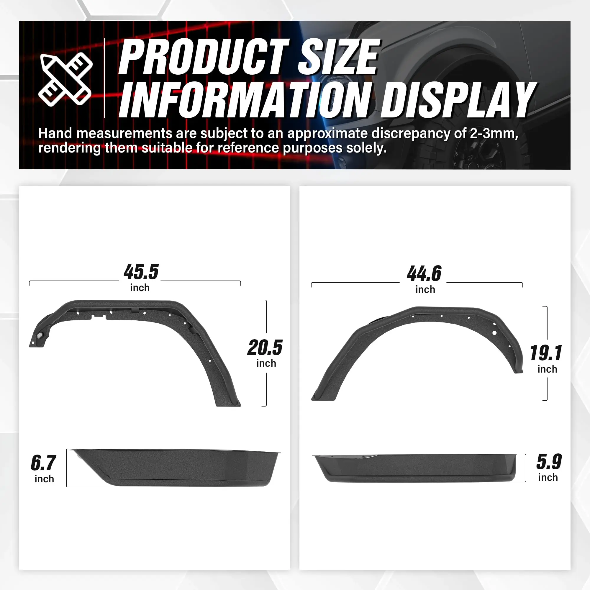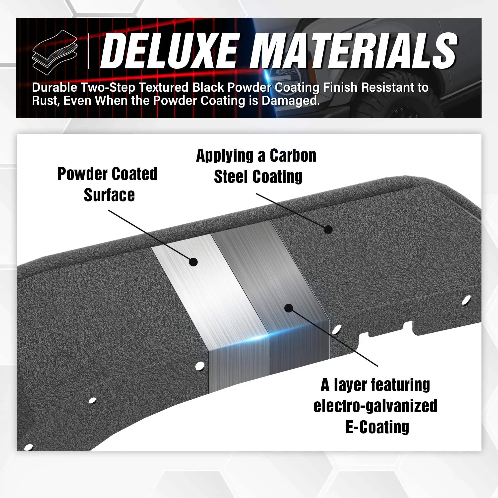 ·【High-Quality Materials】Our tubular fender flares are made from sturdy stainless steel and feature a tough black powder coating. They offer dependable protection for your wheel wells, guarding against mud, scratches, sand, and other external damages.