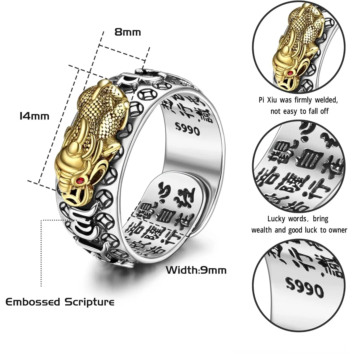 ·【Product Size】: Feng shui rings width is 9mm, Pixiu's size is 14mm x 8mm, using sturdy welding process make pixiu NOT EASY BROKE or FALL OFF. Adjustable design, flexible, stretchable, fit for us size 7-10. High polished inner band ensure wear comfortable