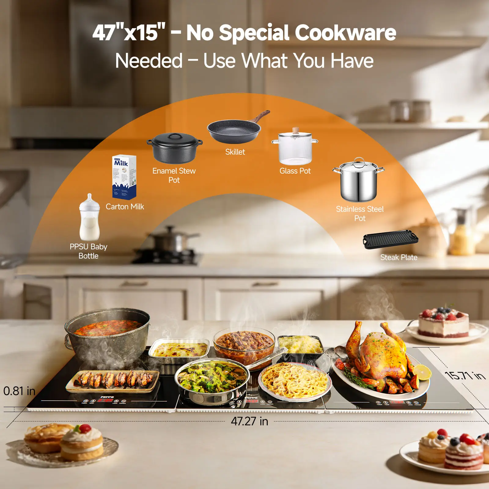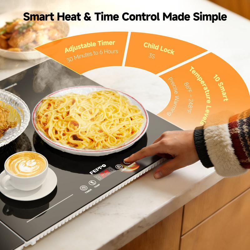 Extra-Long 47"x15 Buffet Layout – Serve More Dishes at Once: Designed as warming trays for buffets party, the 47"x15 extra-long surface creates a clear buffet line and typically fits about 8–10 serving dishes (depending on dish size). Keep food within easy reach on kitchen islands and dining tables for holiday spreads, potlucks, and catered-style gatherings where guests come back for seconds.