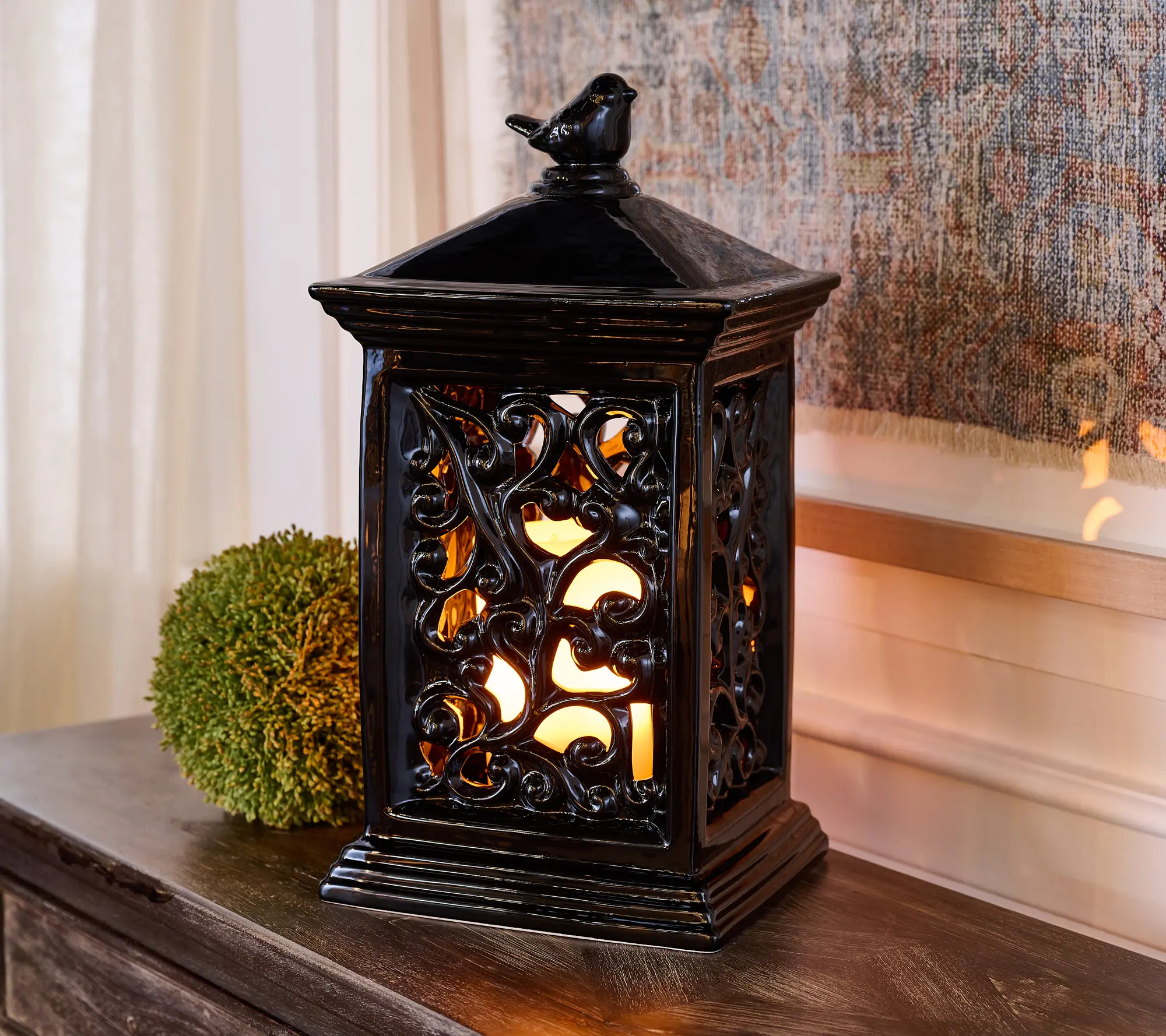Just as beautiful indoors as it is outdoors, the 14.5”, flickering-flame, ceramic lantern, by Valerie Parr Hill, sold by QVC! #qvcloyaltyprogram #valerieparrhill #lantern
