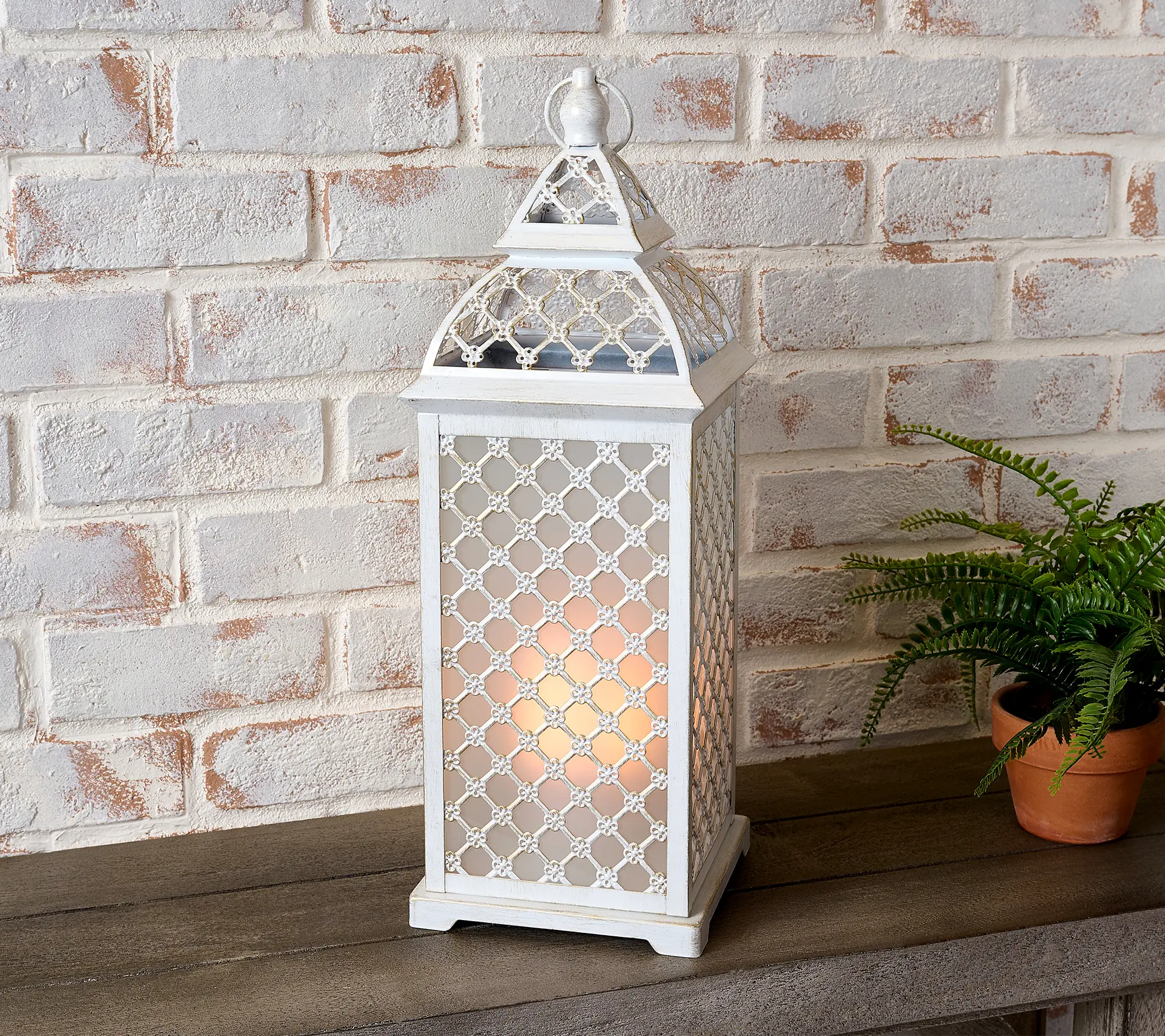 Beautiful and such a large lantern. Love the flickering flame and price was so good. The blue is so beautiful