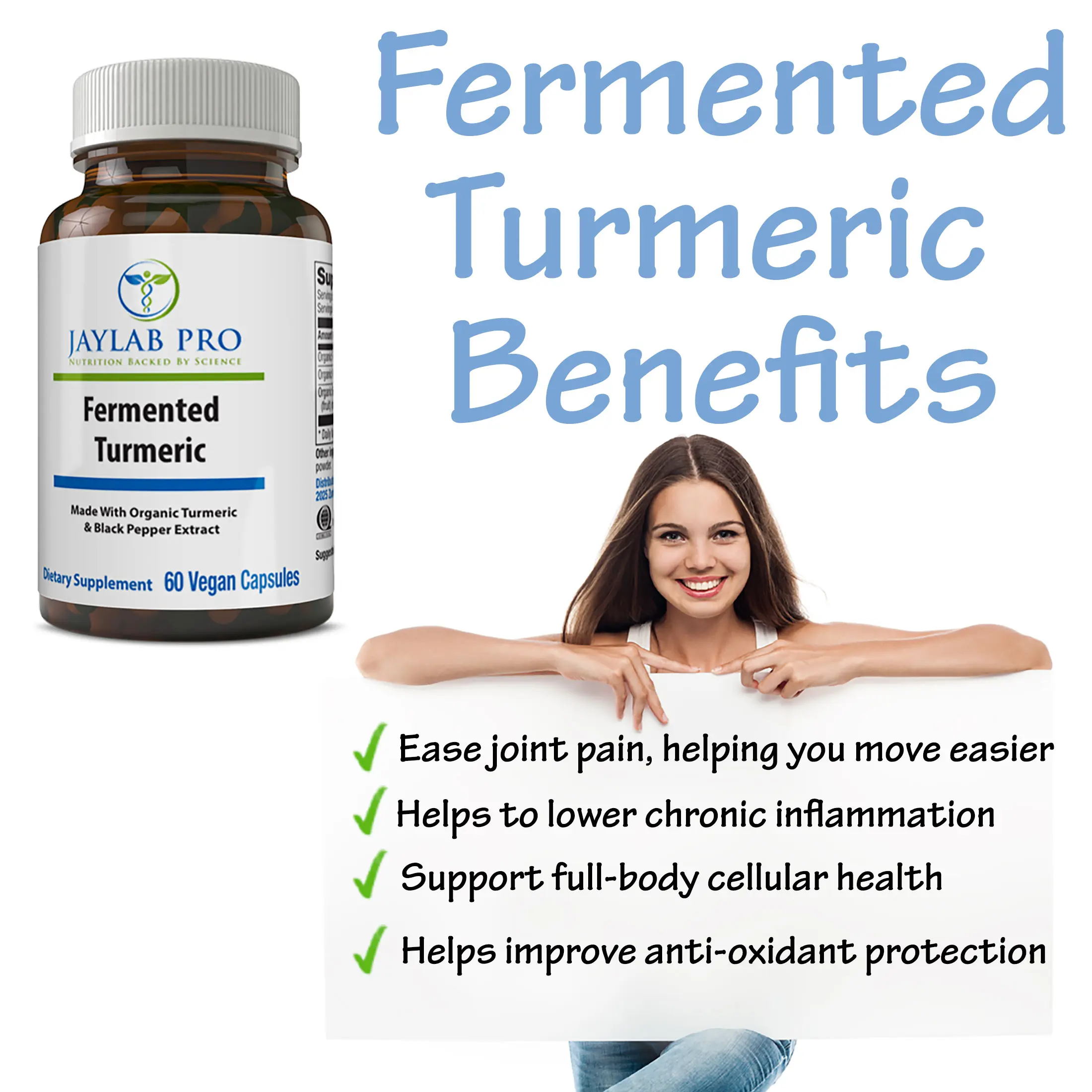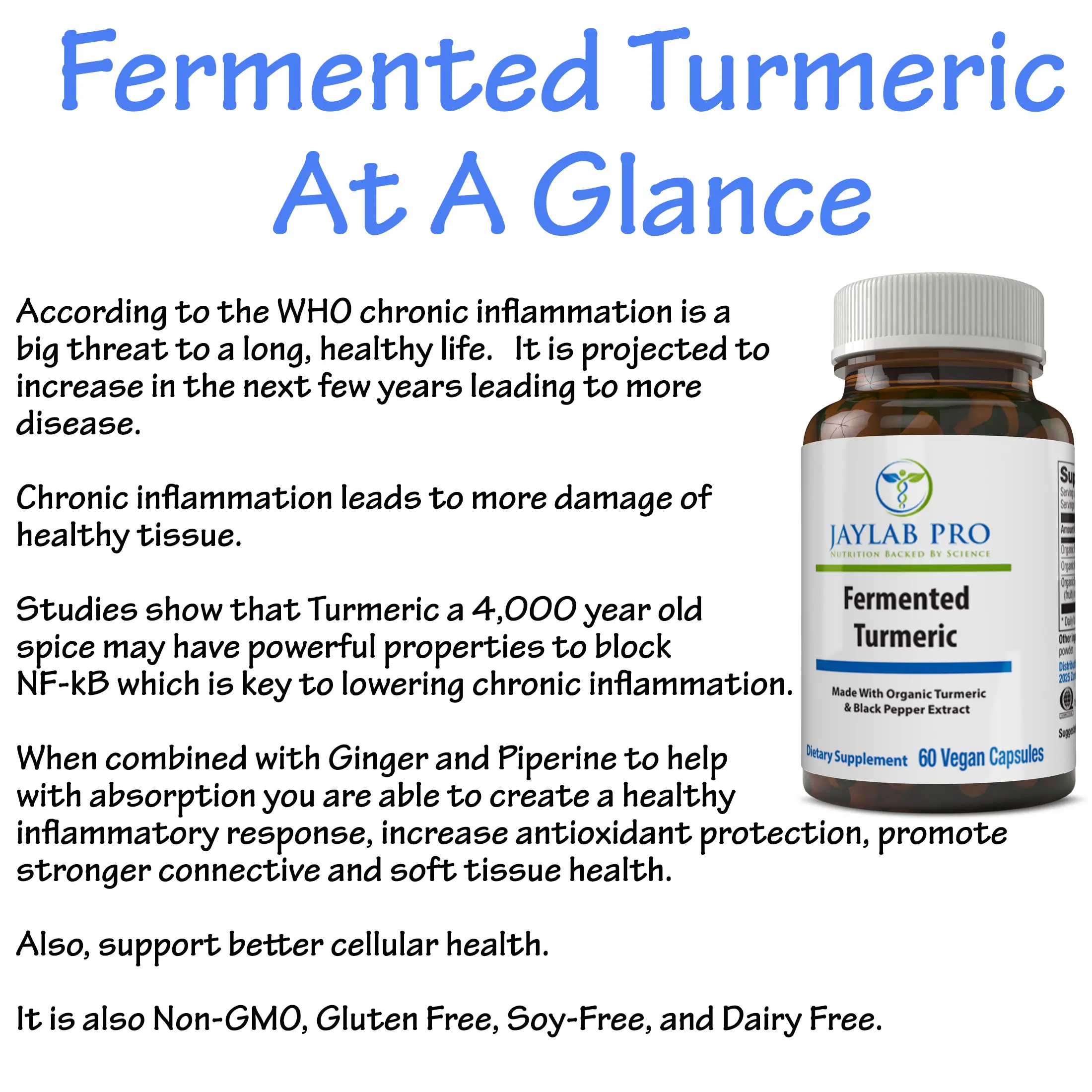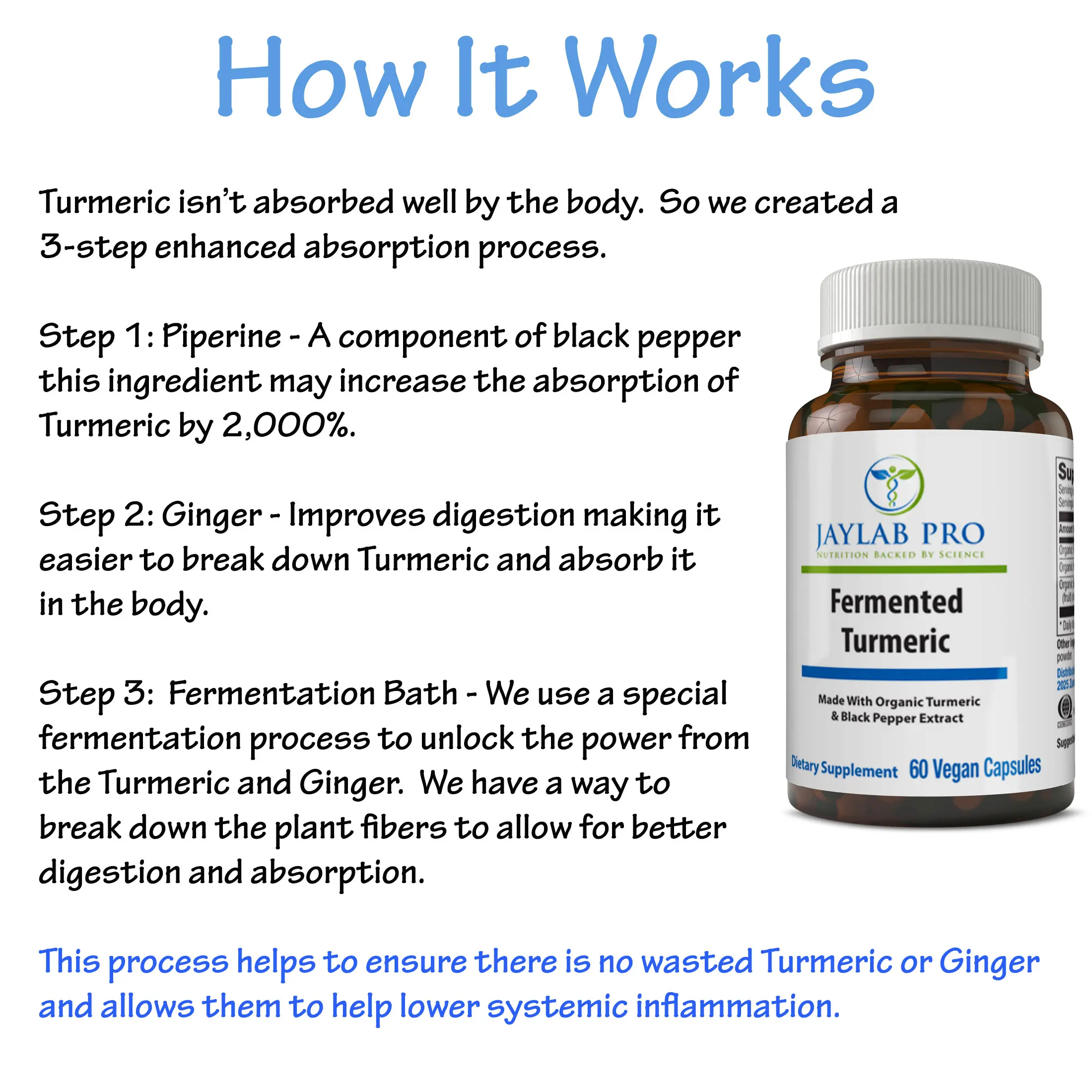 Jaylab Pro Fermented Turmeric Formula is 3-step enhanced absorption process to better absorb Turmeric