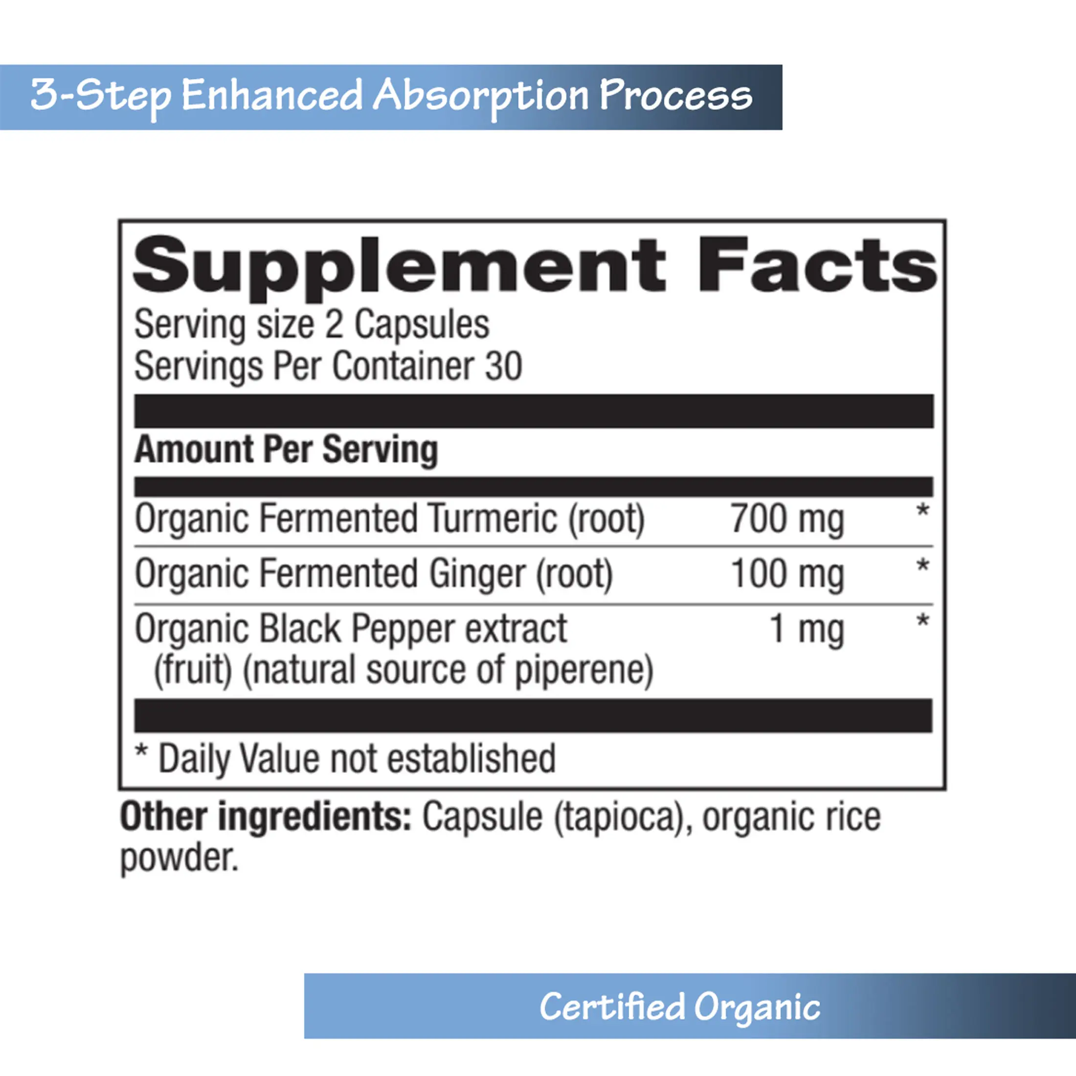 Organic Black Pepper Extract,Organic Fermented Ginger Root,Organic Fermented Turmeric Root