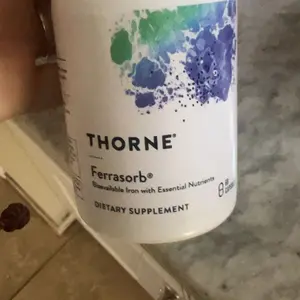 Thorne's Ferrasorb contains iron reacted with glycine to enhance its absorption in the gastrointestinal tract, thus helping to decrease the typical side effects of iron supplementation.*
