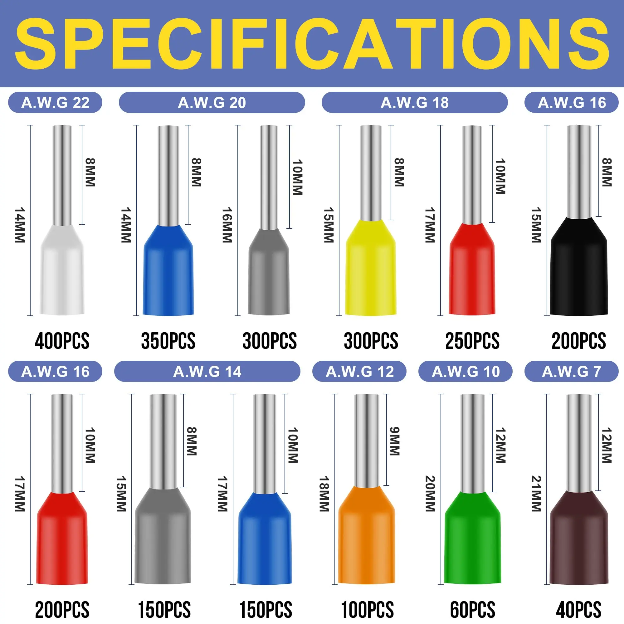 The Kit includes 1*Ferrule crimping tool,1*Wire stripper,2500Pcs Ferrule wire terminals.