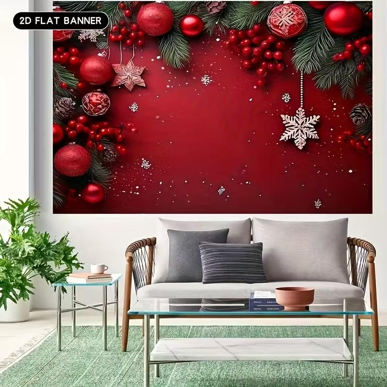 5. 2D Flat, 1-Piece Merry Christmas Party Banner - Bright red polyester with gold "Merry Christmas" text, suitable for indoor and outdoor holiday decorations, perfect for winter celebrations, Christmas decorations, and the best for Christmas.