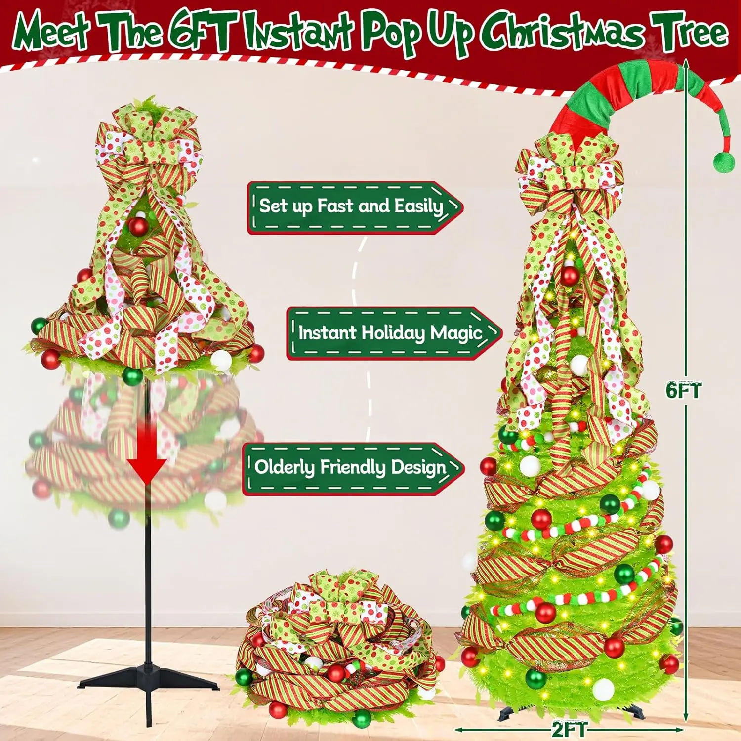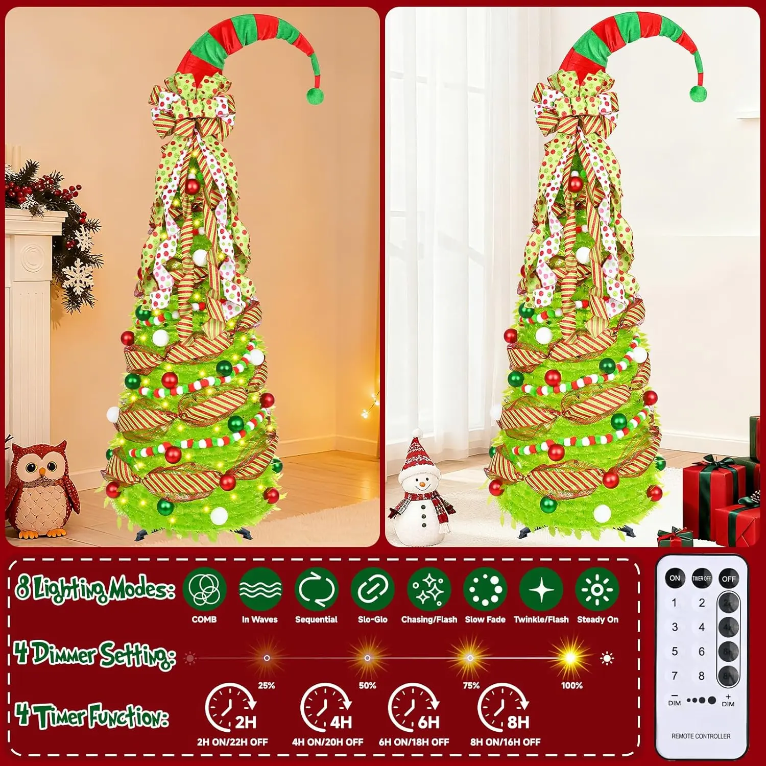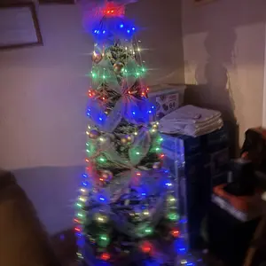 Beautiful tree with working lights, ornaments, decorations, and stand. Collapsible for easy storage and assembly!