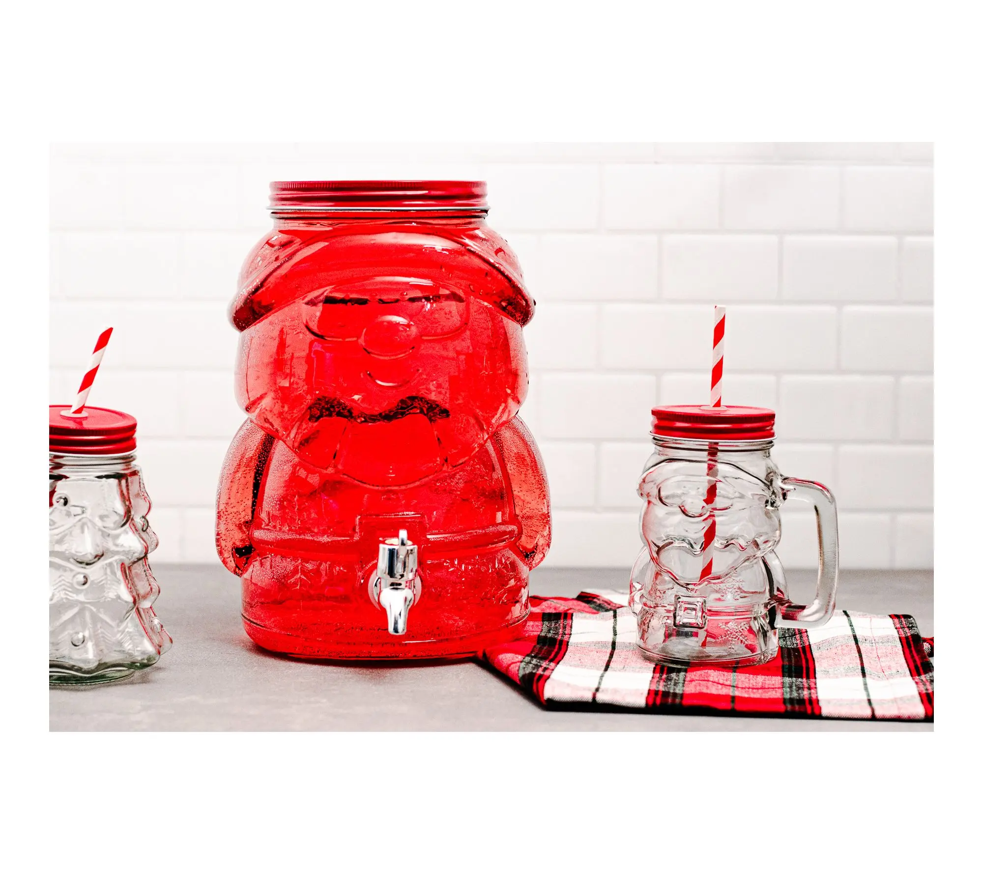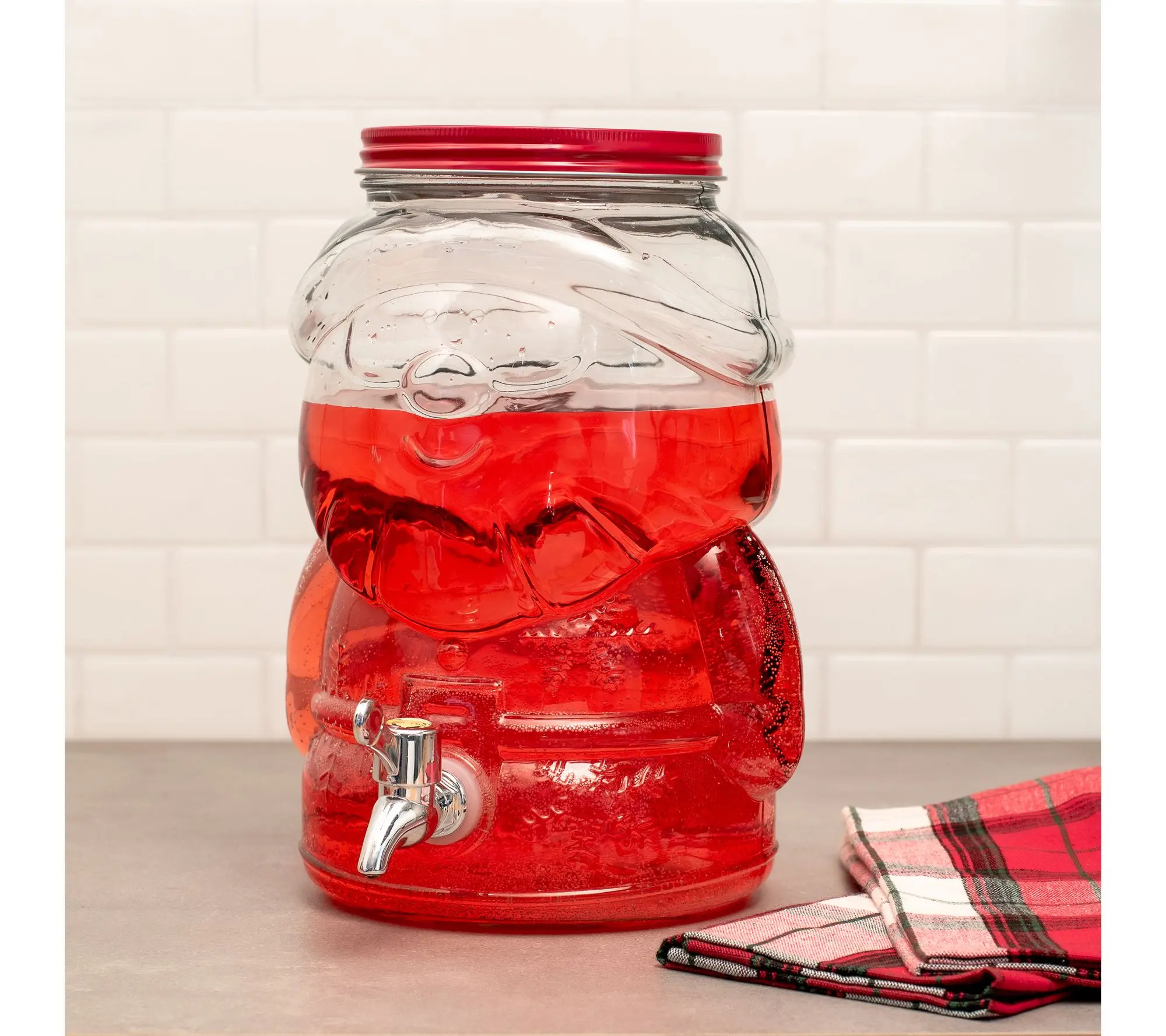 Bring a festive twist to your holiday gatherings with this glass Santa drink dispenser, sure to delight guests as you serve punch, cider, or eggnog in whimsical style. Its generous capacity and easy-pour spigot ensure everyone stays refreshed while the playful Santa design adds a cheerful centerpiece to your seasonal spread. From 10 Strawberry Street.
