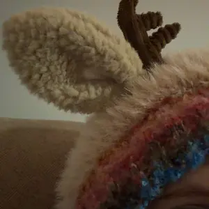 Adorable. Very well made. Ears and antlers are perfect and it's soft and smooth on the outside. Soft lining inside. Easily adjustable for bigger heads because it's got a slit partly up the back. Colors are vibrant.