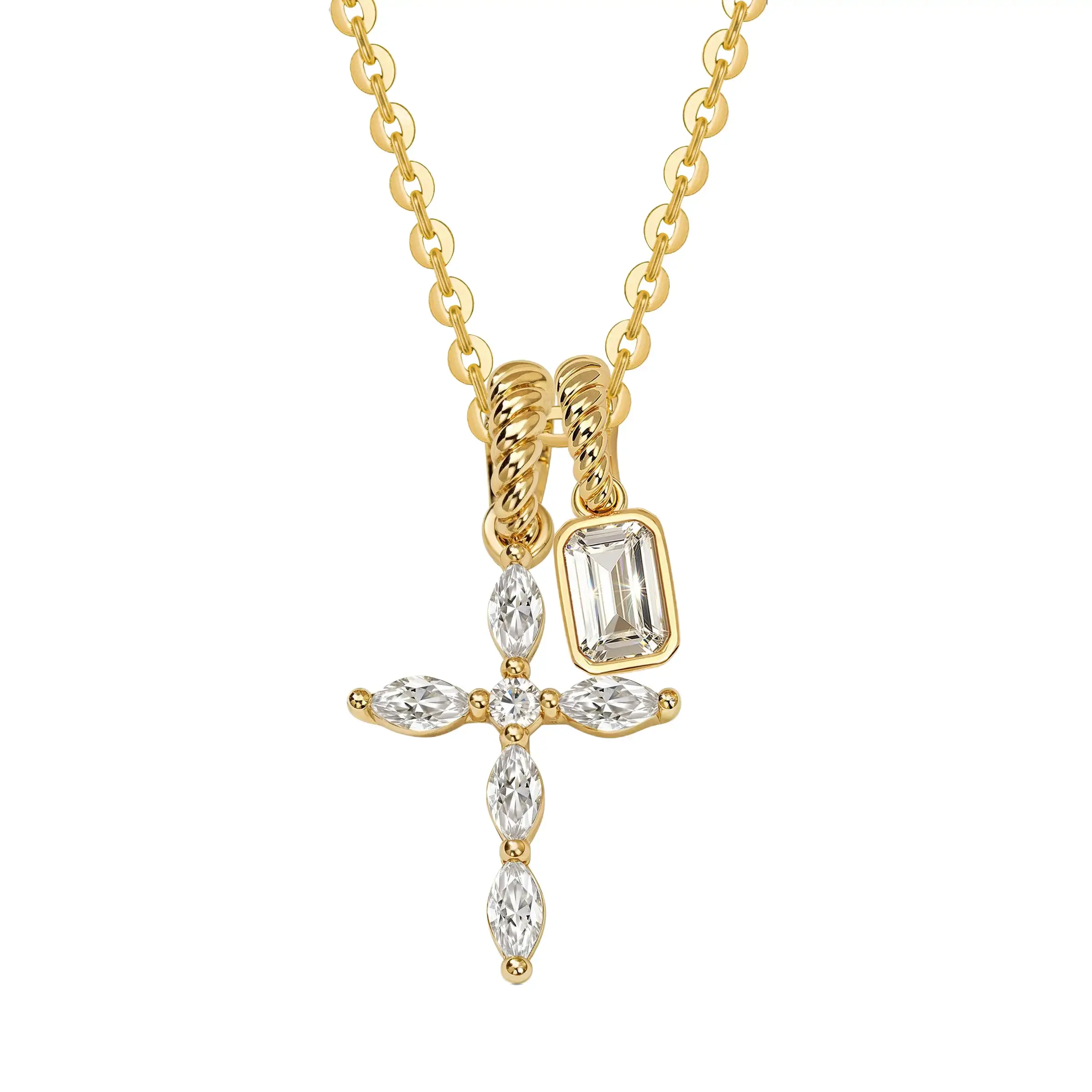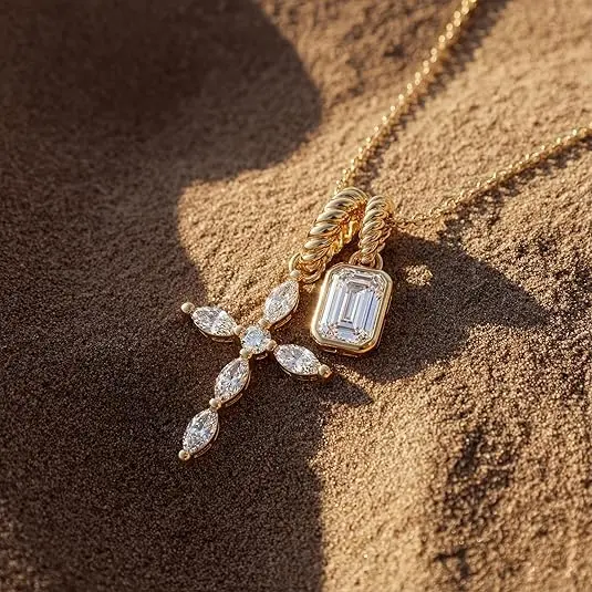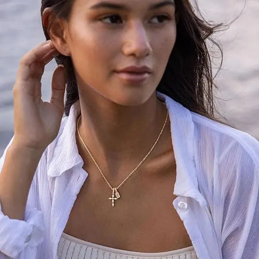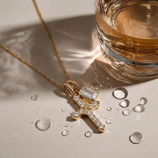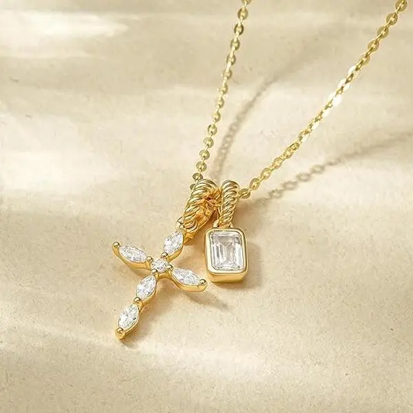 ·Dainty Cross Pendant with Diamond Accents- The centerpiece of this necklace is a beautifully sculpted cross pendant. We offer multiple elegant designs: some feature shimmering CZ stones for a brilliant sparkle, while others present a minimalist plain cross paired with a smaller diamond-accented piece.