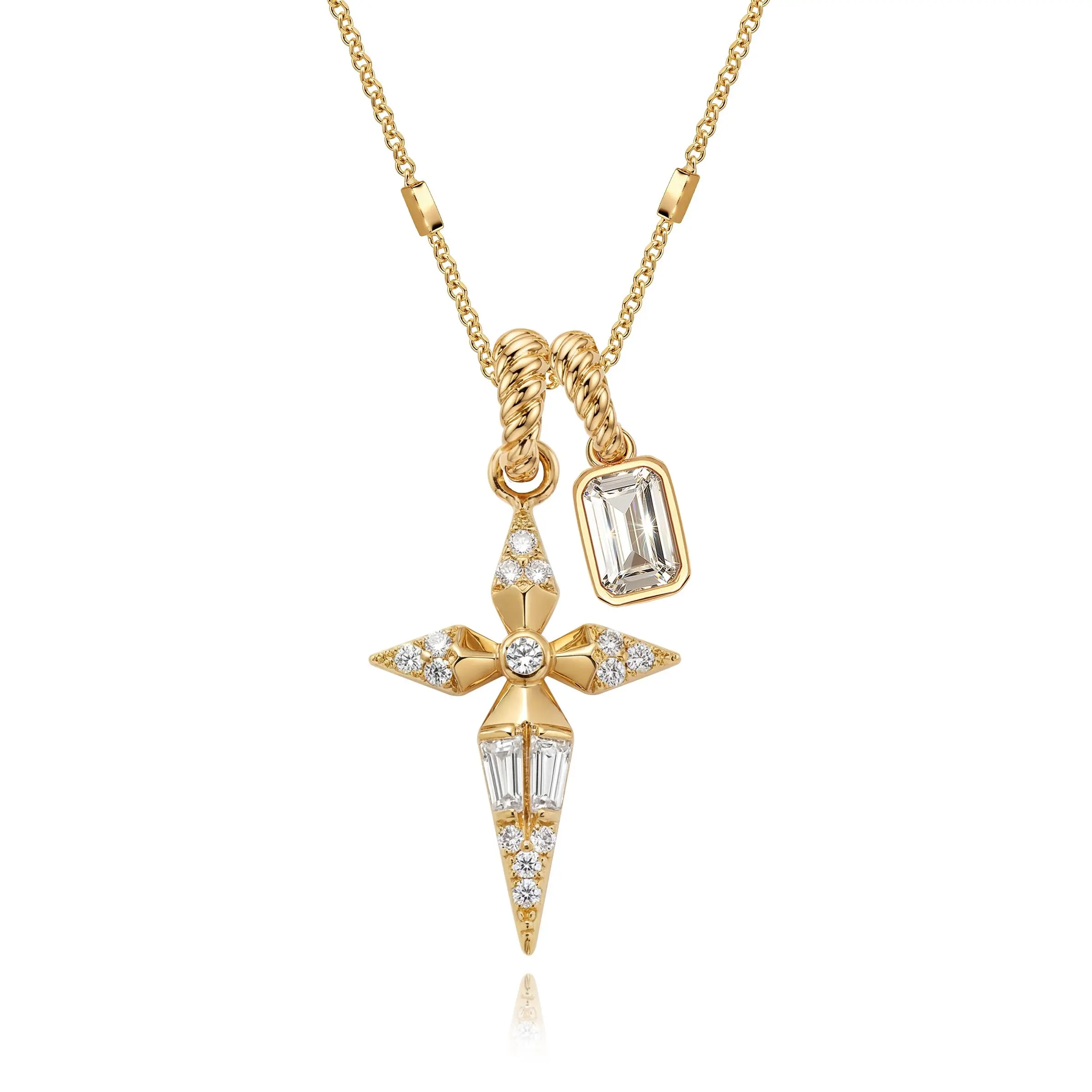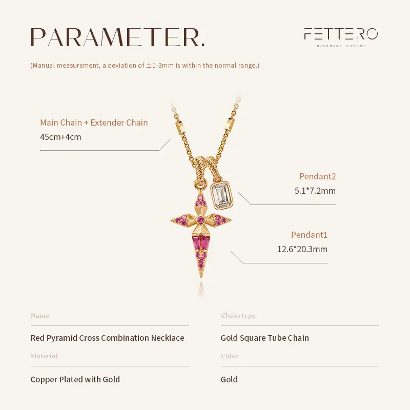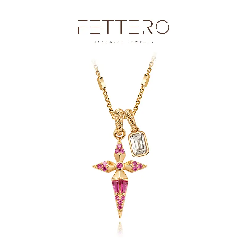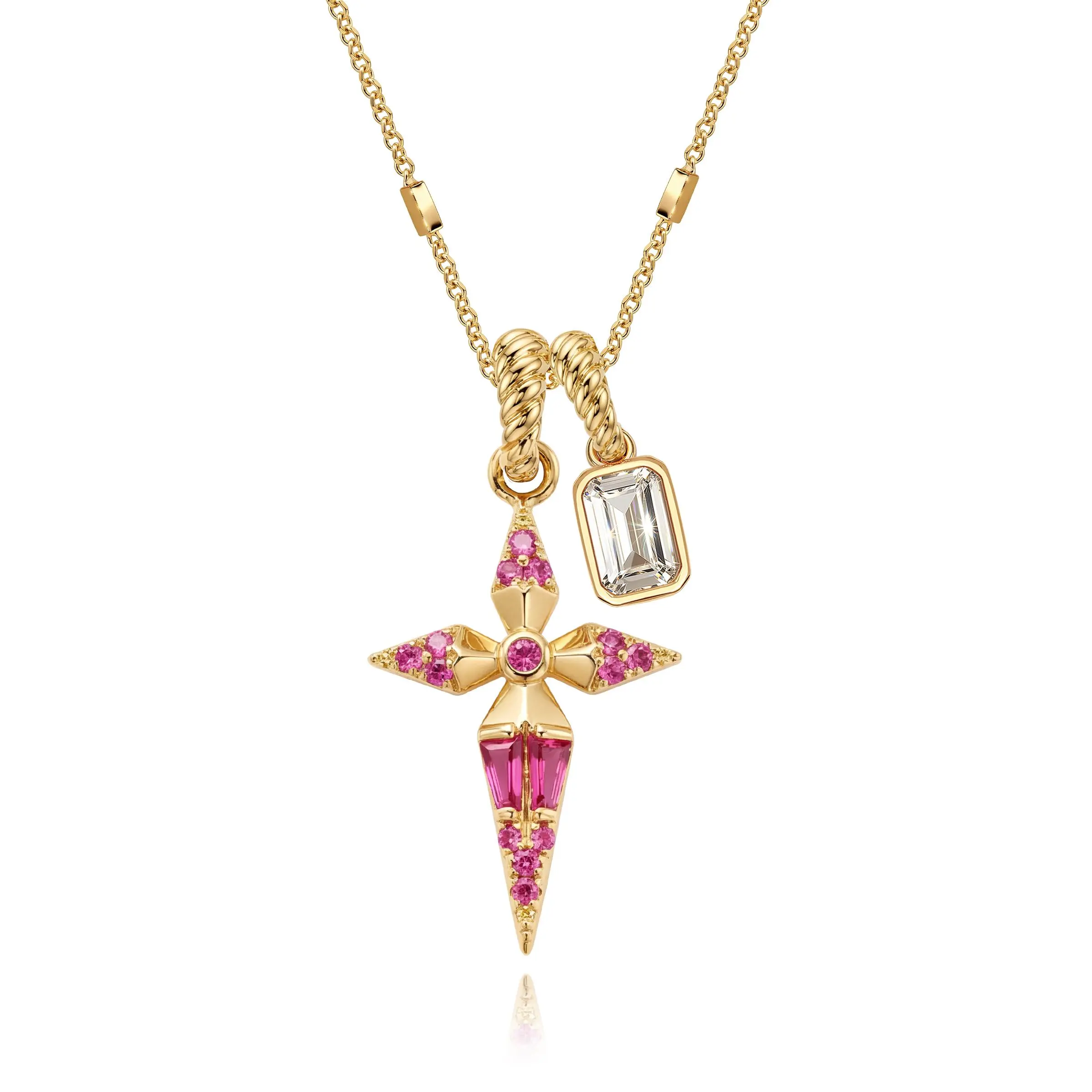 ·Dual Pendant Design - Pink sapphire geometric cross + clear crystal charm for added dimension