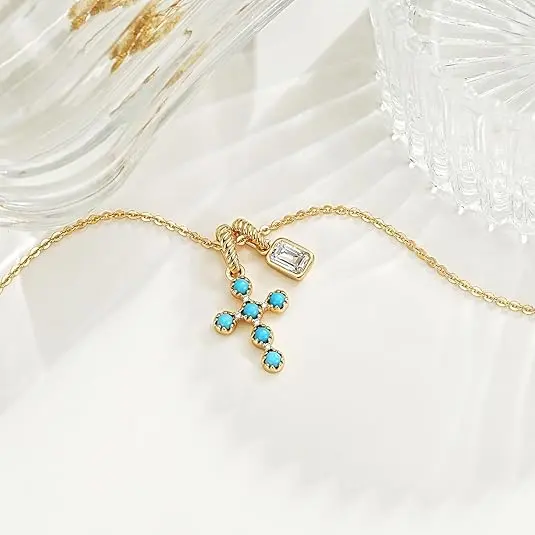 ·Double Pendant Necklace: Classicplated cross necklace micro pave with black cz, paired with a sparkling cz diamond pendant.More than just jewelry, it's a heartfelt fusion of God's love and your personal journey. The timeless womens cross necklace combines faith and personality, features a minimalist trendy, cross christmas necklace suit for daily wear