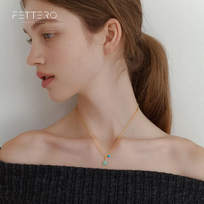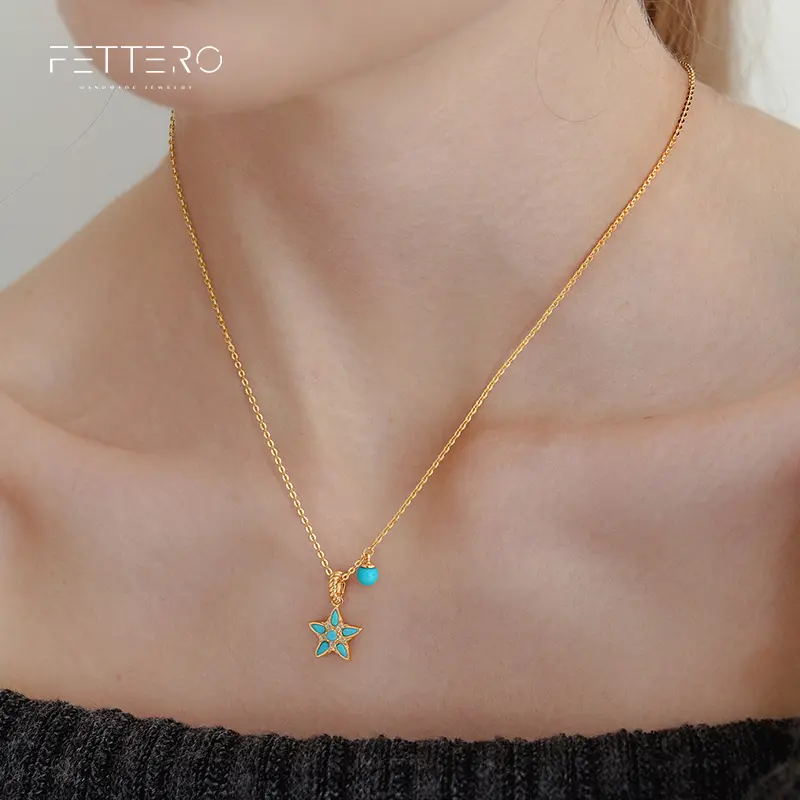 🌟 Fettero Gold Plated Turquoise Star Pendant Necklace