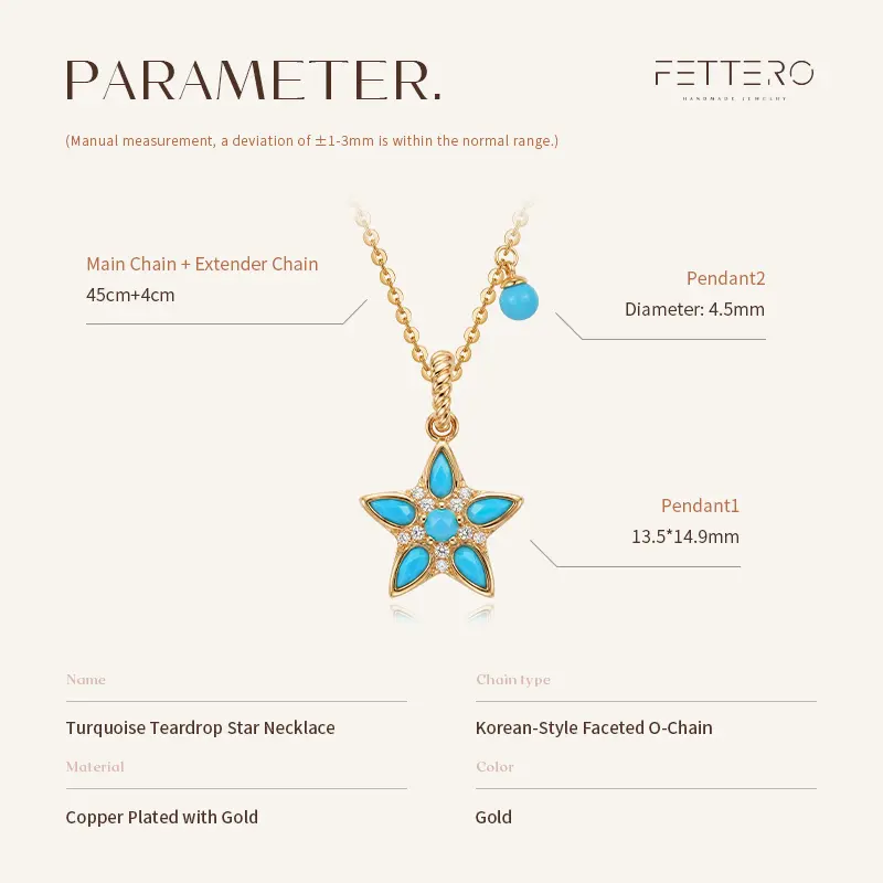 ·Elegant Design: This necklace features a turquoise star pendant, adorned with a teardrop stone. The five-point star charm adds a touch of sophistication. 🌟