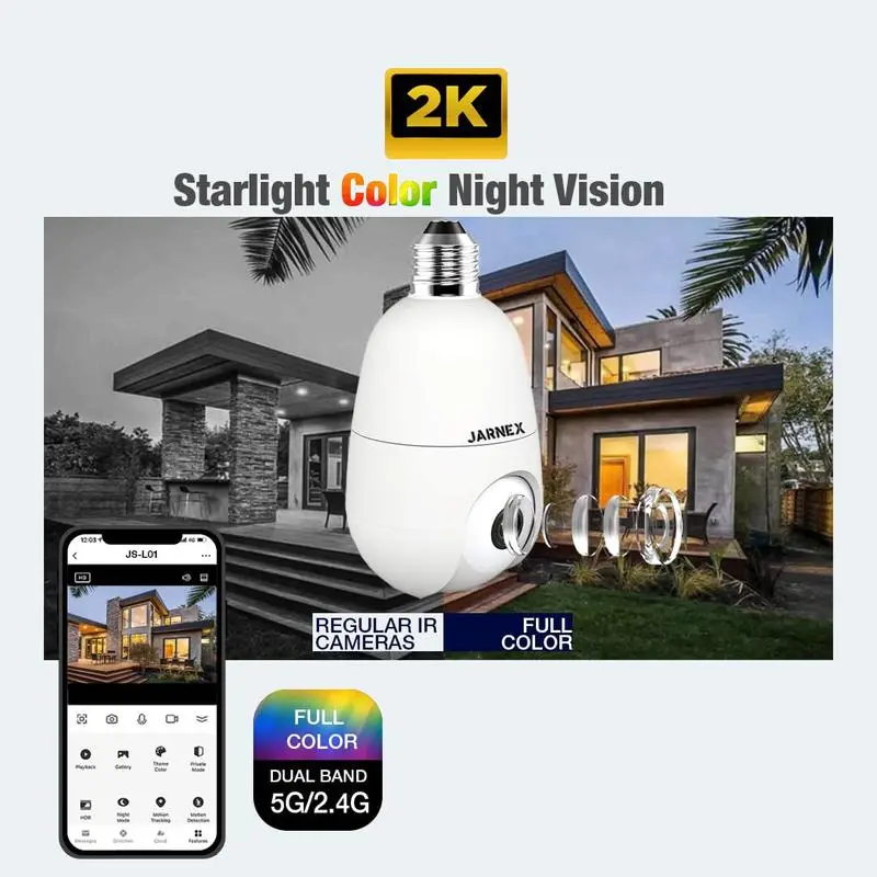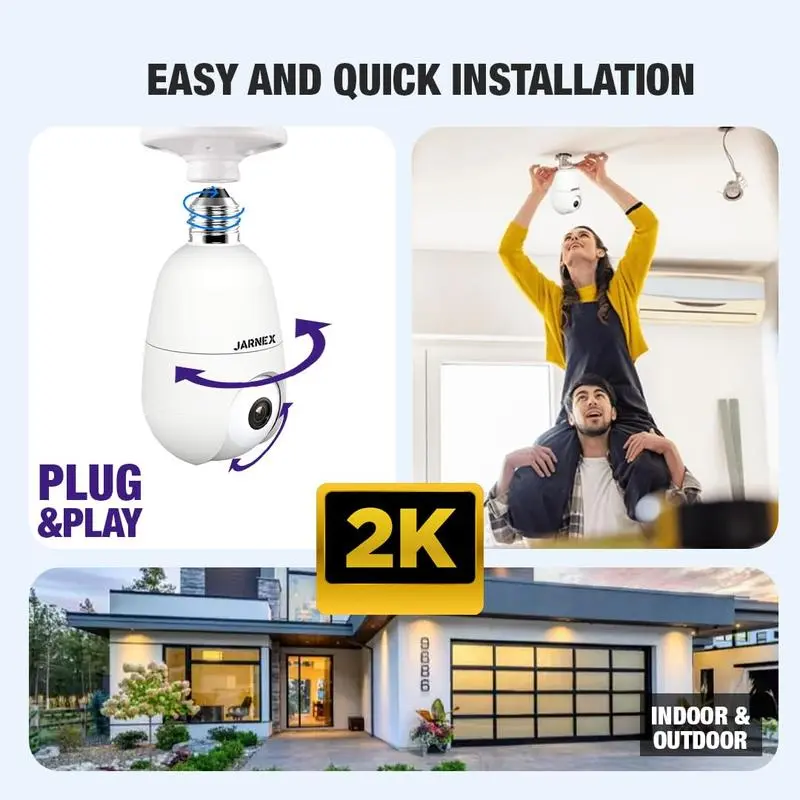 ·Wireless & Easy Installation: Simply screw the light bulb security camera into a normal E27 light socket (110V ~ 240V). No additional power supply is needed. Features new connection technology: just open the phone app and follow the installation guide to complete the Wi-Fi camera connection within 30 seconds.