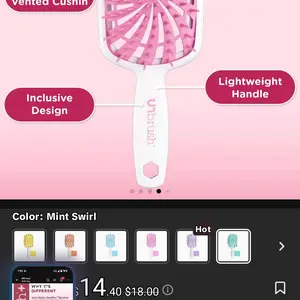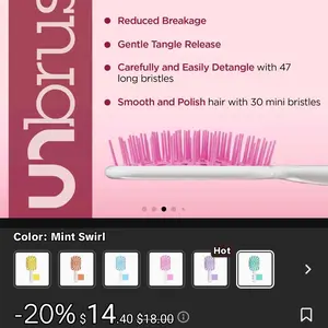 Absolutely LOVE this brush! It's so easy to brush my curly hair now! I love the color too it's my favorite color and I got a cute free mini brush! Very satisfied and definitely recommend the Unbrush!!!
