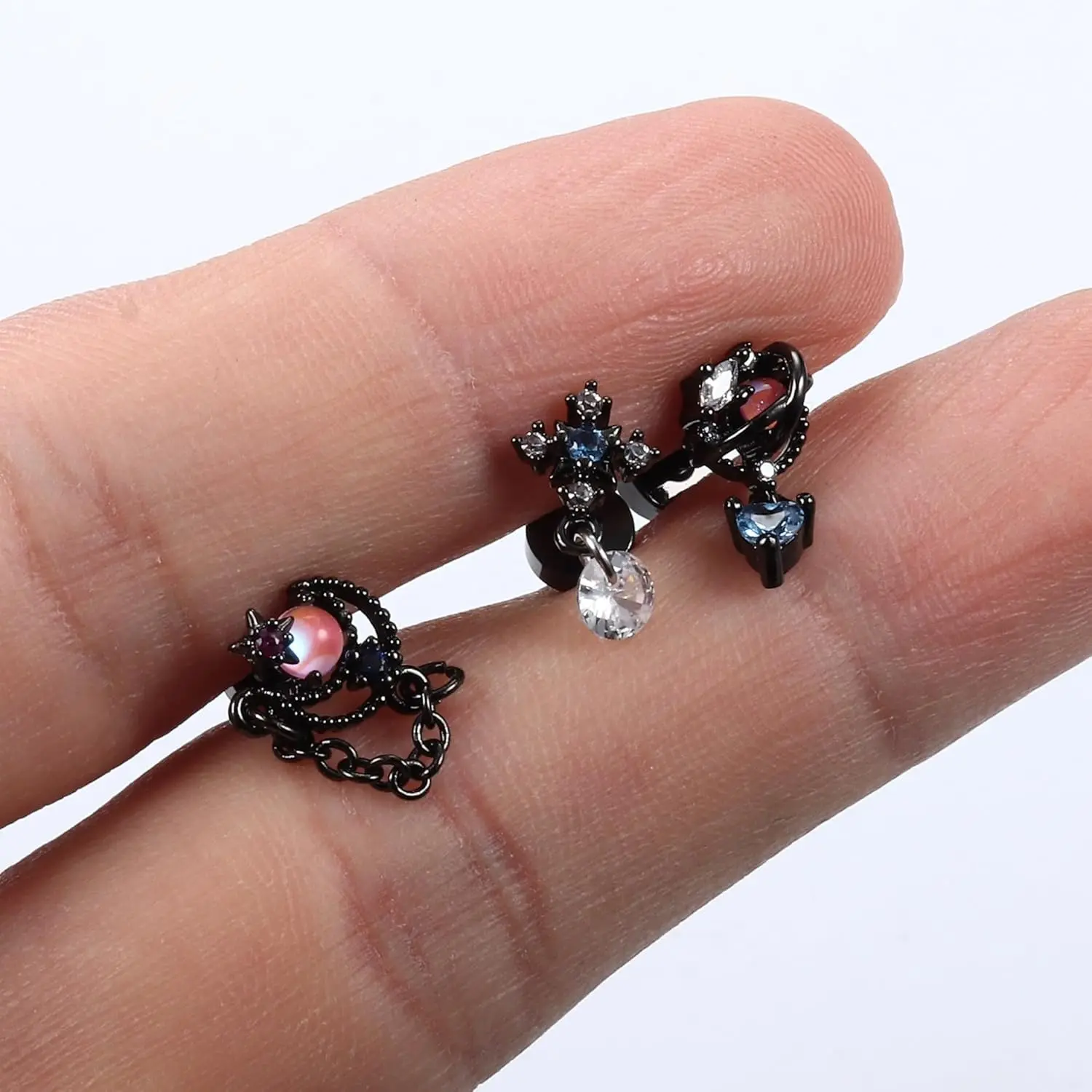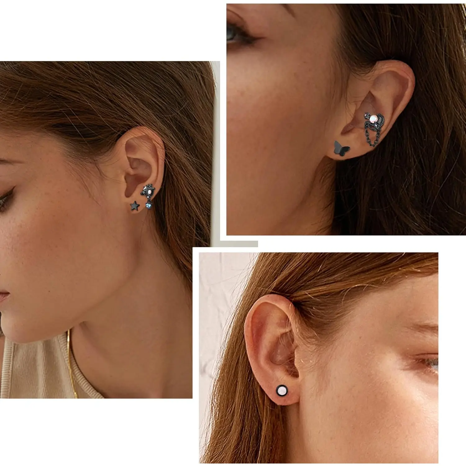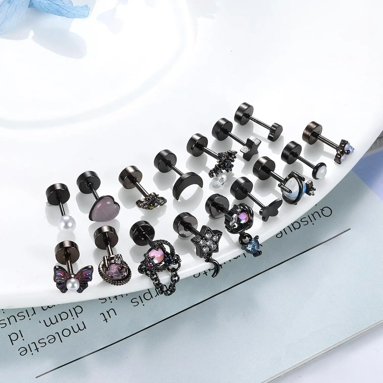 ·【Economical Cartilage Earrings Set】:You can get 16pcs stainless steel cartilage piercing jewelry for women with one order,including opal heart tragus earrings,dangle CZ moon tragus piercing jewelry,butterfly screw back earrings,etc.There's enough different styles to match any outfit or costume you are wearing.