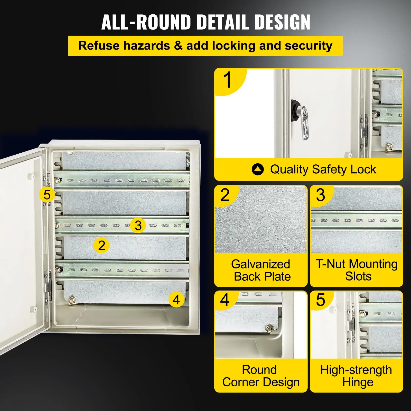 ·Convenient Operation: The fiberglass enclosure box is equipped with a detachable galvanized mounting backplate and t-nut mounting slots for easy installation of electrical components. Complete accessories and mounting holes can quickly fix the fiberglass electrical box on the wall.