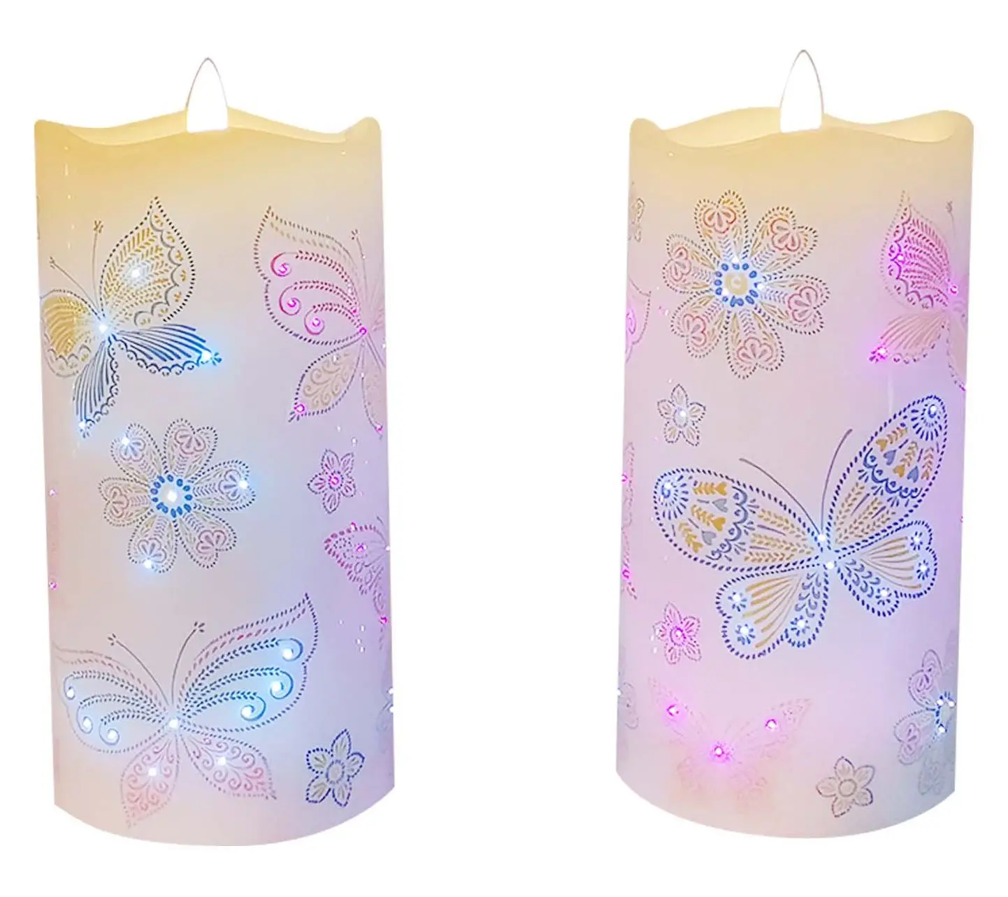 Add some soft flickering ambiance to any room with these fiberoptic candles. Featuring a sweet seasonal design, the pretty pair dresses up any festive occasion, whether youre hosting a family gathering or just enjoying a quiet evening. From Temp-tations®.