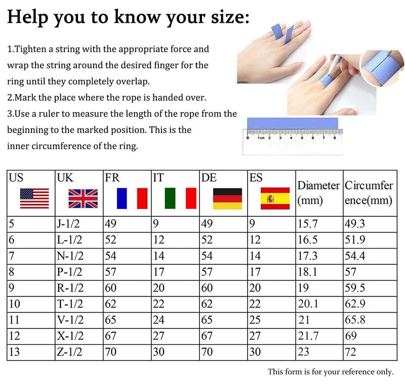 ·The ring comes in sizes 5-9, offering a comfortable fit for different fingers. It can be easily adjusted to fit your preferred finger, ensuring a snug and secure fit. This feature makes it suitable for both women and men.